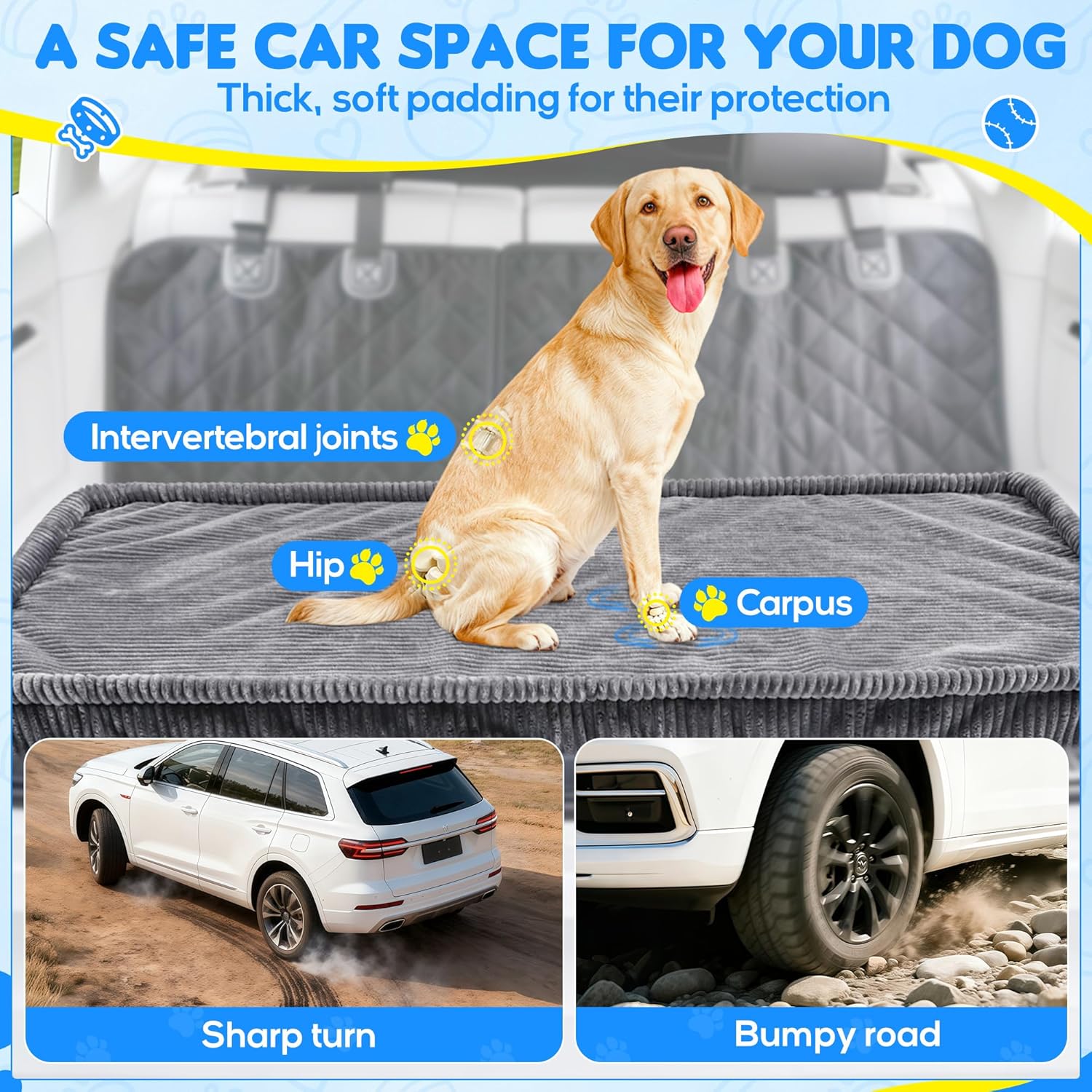 About this item đ Anti-Slip Backing: Exclusive anti-slip backing engineered for dog car seat coverâenhanced grip boosts friction by 70% (far beyond standard mats). Our pet car mat stays locked tight through acceleration/turns/bumps, keeping your dog secure while you drive distraction-free. đ Orthopedic Egg Crate Foam Padding: Honeycomb design + flannel layer boosts breathability, cutting joint stress by 58% on long drives. Our 2-inch (5cm) thickness is Specially Designed for Dog Car Seat Coversâavoids instability from thicker pads, balancing plush comfort and on-road safety for seniors or pups with hip issues. đ Ultra Soft Flannel Fabric: Velvety-silky premium flannel lets your pup relax instantly. Temperature-balanced, the travel dog bed's stays cozy in cool weather without overheatingâperfect for short errands or cross-country trips. â Waterproof Lining: Road accidents (spills, urine, snacks) are no match for the waterproof inner lining. Our dog car bed locks in moisture to protect the bed and your car seats from stains/odorsâideal for messy pups. đ¶ Removable & Washable: Hidden paw-safe zipper for easy cover removal. Machine wash cold (30°C) with gentle detergent (no bleach), dry below 40°C (no ironing)ârefreshes quickly for next adventures. đ Versatile for Multiple Scenes: Unfolds to 56"x28.7"âthis dog car bed fits SUVs/sedans/trucks, plus sofas/picnic blankets. A travel essential that adapts to your on-the-go lifestyle. đ Note: This is a dog car bed mat (no backseat extender). Shipped compressed, it fluffs up in 48 hours. The 2-inch thickness is purpose-built for car useâbalanced comfort and safety, no extra bulk. âș See more product details