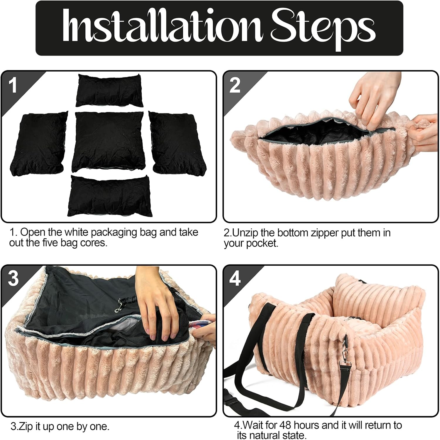 - Included Components: Dog Car Seat, Safety Belt, Storage Pockets