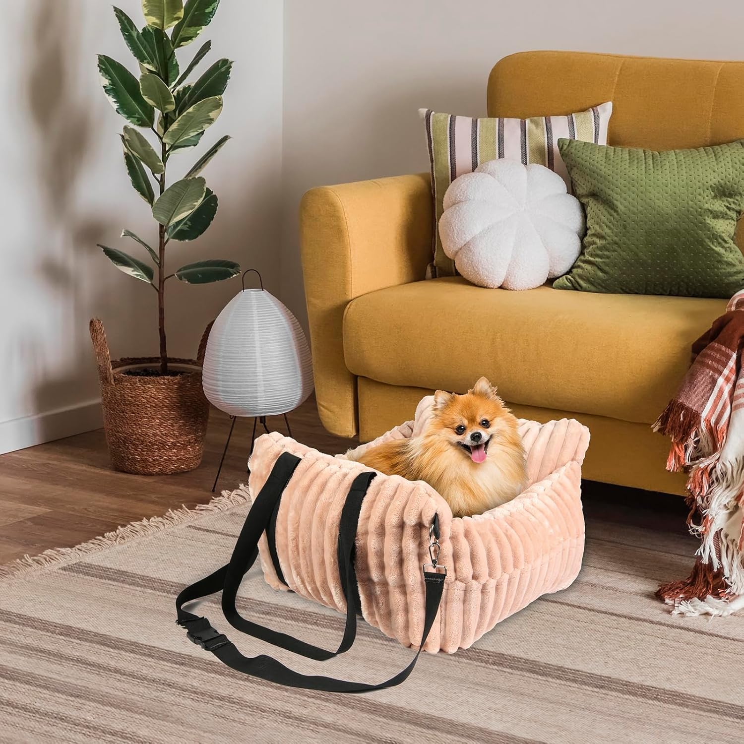 About this item SAFETY DESIGN: Features a secure safety belt attachment and sturdy construction to keep pets safely restrained during car travel CAPACITY: Specially designed for small dogs weighing under 30 lbs, providing a comfortable elevated viewing position CONVENIENCE: Detachable and machine washable components make cleaning and maintenance hassle-free STORAGE SOLUTION: Built-in storage pockets allow easy access to pet essentials during travel VERSATILE USE: Functions as both a secure car seat and a cozy travel bed, perfect for road trips with your furry companion › See more product details