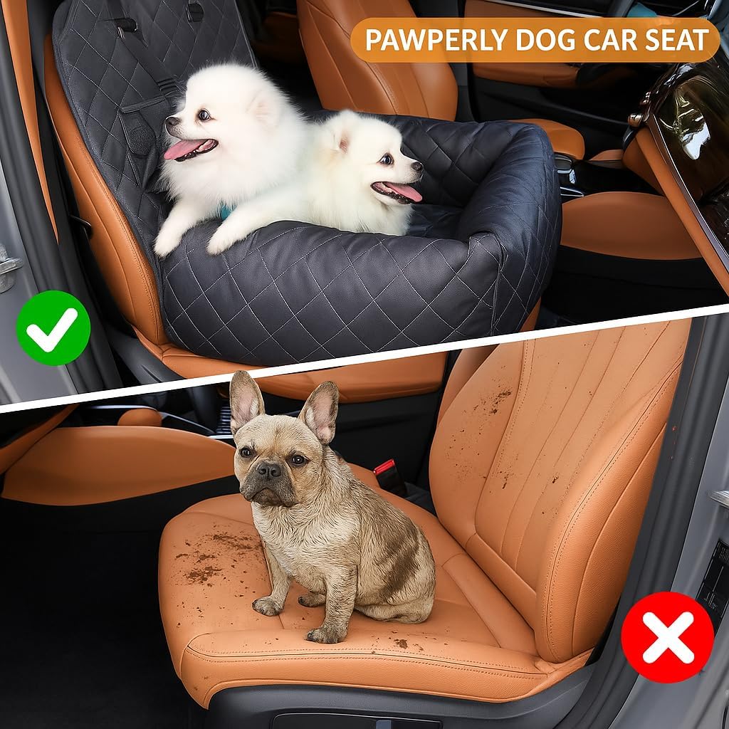About this item Safe & Secure Travel – Built-in seatbelt loops and an adjustable safety strap keep your pet securely in place, giving them a secure and elevated spot to enjoy the view while traveling comfortably. Perfect for Small & Medium Pets – Designed to fit dogs and cats up to 40 lbs, giving them a secure and elevated spot to enjoy the view while traveling comfortably. Comfortable Plush Cushion – Soft, supportive padding creates a cozy resting spot, helping pets relax and enjoy the journey without stress. Durable & Water-Resistant – Made from high-quality 600D Oxford fabric that protects against spills, accidents, and muddy paws for long-lasting use. Easy to Clean – The removable, washable cover makes maintenance quick and simple, so your pet always has a fresh and clean seat. › See more product details