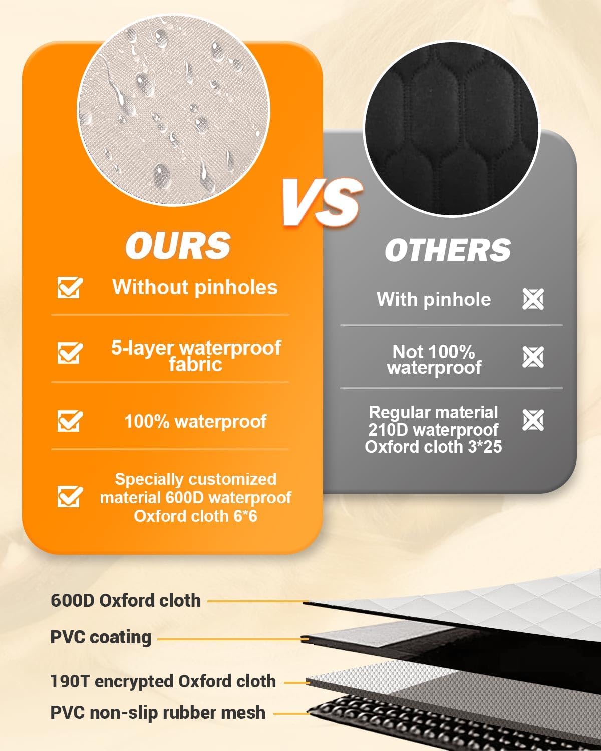 About this item Superior Material :Crafted from premium 600D Oxford cloth and waterproof TPU, our dog rear car seat for medium dogs boasts exceptional waterproof and scratch-resistant properties. No liquid or pesky scratches will penetrate this top-notch cover, ensuring your car seat remains pristine. Mesh Window & Storage Bag :Prioritizing your pet's comfort, our back seat cover for dogs comes with a breathable and transparent mesh window that allows you and your furry friend to see and hear each other, alleviating any stress or anxiety. The added storage bag provides ample space to store your pet's essentials. Reinforced Stability :We understand the importance of stability, which is why we've added multiple accessories for reinforced stability. The PVE nonslip underside keeps the dog car rear seat cover securely in place, while our side flap metal buckles, seal zipper, seat anchors, seat snap buckles, and Velcro opening for safety belts ensure maximum stability and safety for your pet. Easy to Clean :The dog accessories for large dogs for car is a breeze to clean with its durable and versatile material, making it effortless to remove any mud, dust, or liquid spills, using a machine wash, hand wash, or vacuum cleaner. Say goodbye to the hassle of cleaning your car seat cover. Easy to Install & Remove :Setting up our travel dog back seat cover is a breeze thanks to its straightforward structure. Simply watch our video, and you'll have all the parts assembled in no time. Plus, with different installation methods, such as Hammock Mode, Truck Mode, and Seat Mode, you can customize the cover to your needs and preferences. Hit the road with ease and confidence. › See more product details