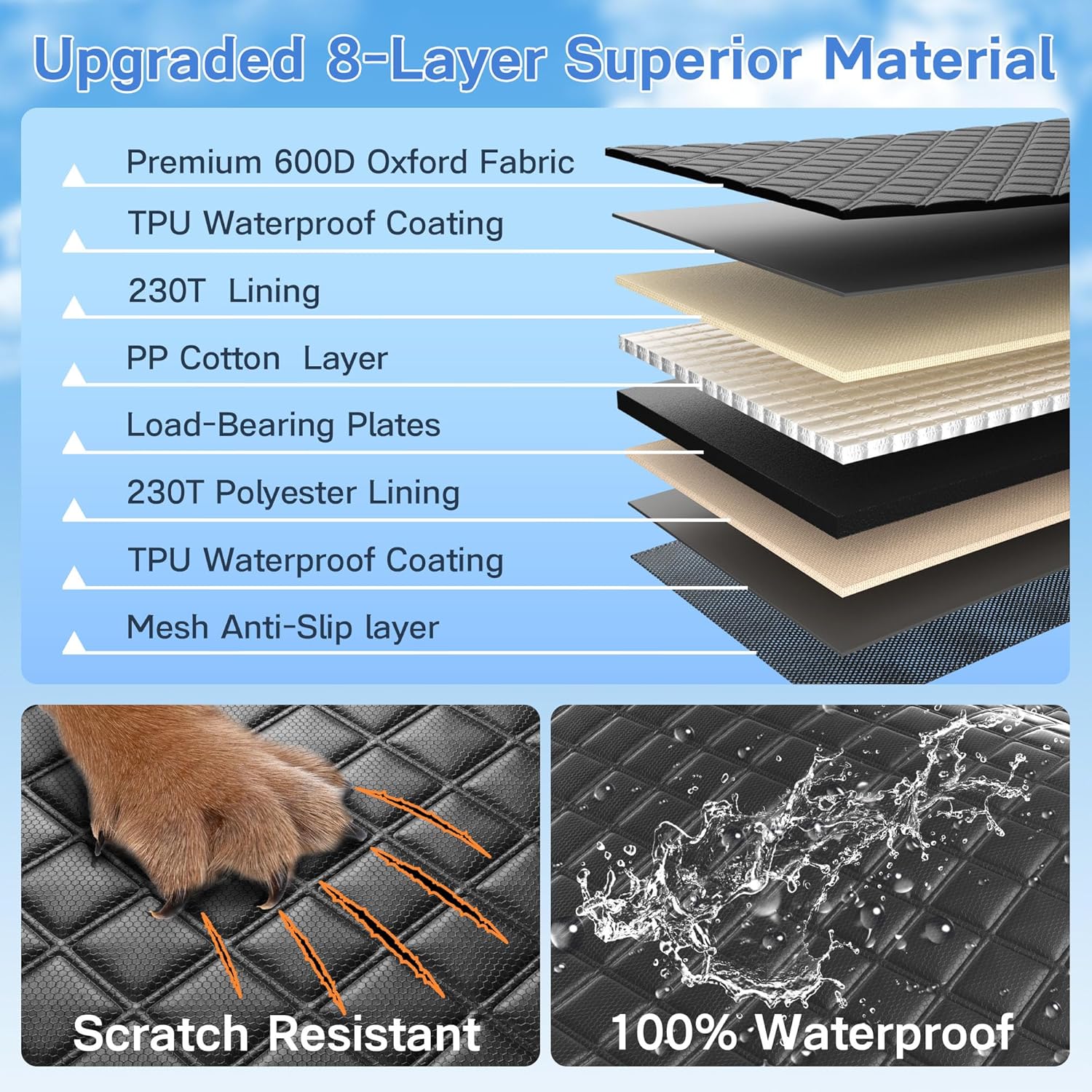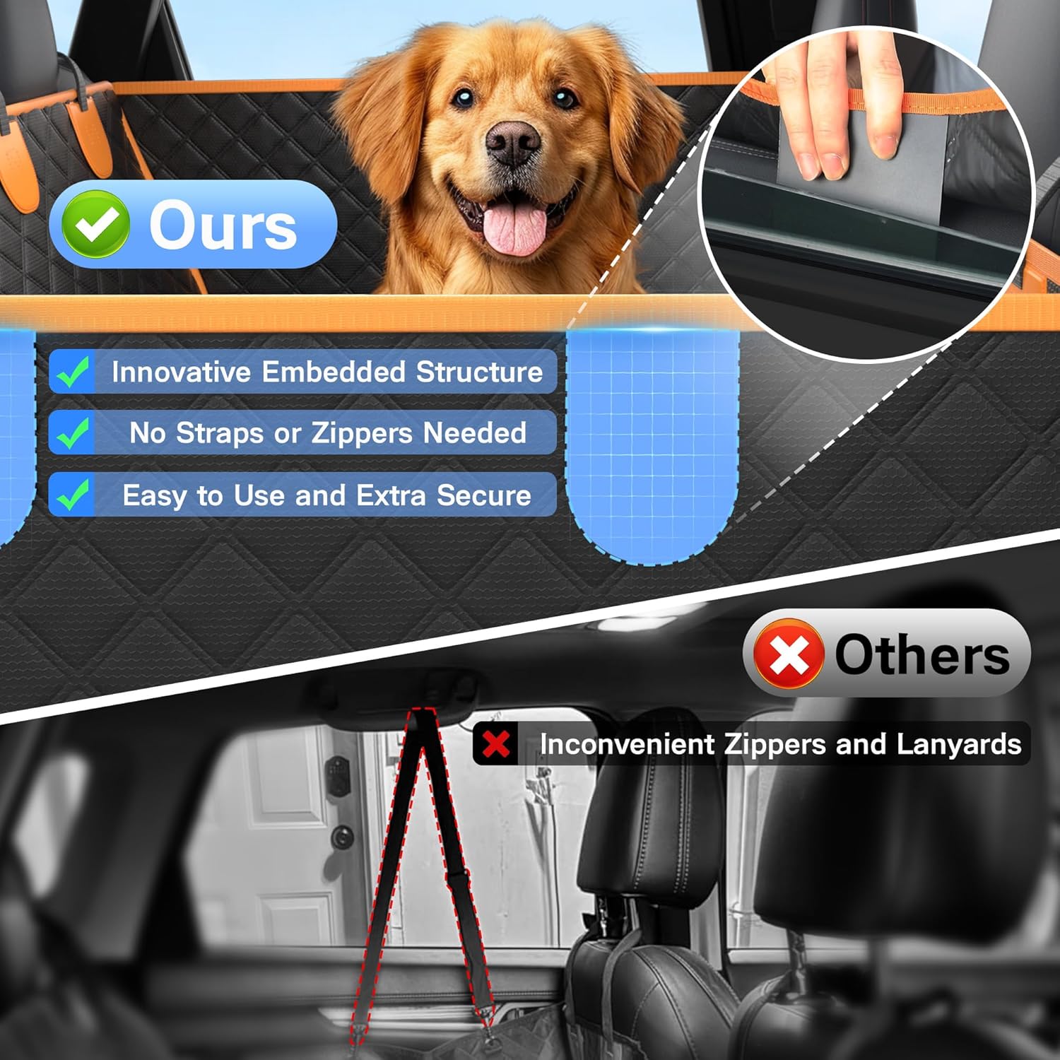 About this item - Dog car seat cover for back seat is upgraded to a hard backing combined with high quality sponge design, super load bearing and soft and comfortable. The backseat extends to 63cm wide space, the dog can stretch freely, additional bottom anti-slip point rubber design, can keep the stability of the mat when the car is driving and stopping rapidly, to prevent the dog from slipping and falling from the seat; protection in place, the owner can rest assured. The door protectors use embedded inserts, solving the disadvantage of Velcro losing its stickiness for a long time, making it more convenient and long-lasting to use. Dogs lying on the car door paws will not produce scratches, while not blocking the light and vision of the backseat, take your dog to see the sun, moon and mountains together. - Dog seat cover for back seat are made of advanced 600D polyester's oxford fabric with 100% waterproof TPU material, fully guarantee the wearability and waterproof of the mats, no need to worry about your pet's paws causing damage, while keeping your car's interior safe and preventing scratches, fur hiding, and urine infiltration, and it is suitable for long-distance trips as well. - Simple and easy to install, mountaineering buckle and safety buckle installation is effortless. Daily cleaning only need to use a vacuum cleaner or wet step for hair and liquid debris fast cleaning, you can also remove the hard base plate to put the dog pad into the washing machine for deep cleaning, installation and cleaning can greatly save labor, material and financial resources. - New upgraded dog car seat cover for most car models, such as family cars, trucks, SUVs, luxury cars. The mesh design in the center promotes air circulation and human-pet interaction, and the storage area can not only hold your dog's drinking water and toys, but also your baby's snacks. In addition, the mat can also be used as a camping mat and a pet placemat, a multi-purpose value. › See more product details