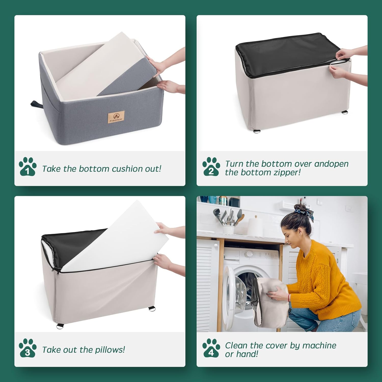 About this item Large Dog seats Size : PAWBOSE Dog car seat large sized 26.8'' (L) x 19.7'' (W) x 15.4'' (H), this dog carseat is suitable for large dog under 55 pounds or two small dogs under 20 pounds . It can be installed in the back seat of in a larger space in the trunk, such as in an SUV Safety And Comfort : This large dog car seat are made of high-density sponge and soft velvet fabric, ensuring soft;comfort and durability.The non-slip bottom and robust safety belt or harness ensure your pet's safety during the ride. Additionally, two storage pockets on the side provide a convenient place to store dog supplies Easy Installation And Detachable : To install the dog booster seat, you just need to pass the car seat belt through the two holes on the bottom of the seat and fix it, then adjust the buckle to fix it on the headrest of the back seat of the car. Please remember that the interior foam is not washable Perfect for Long Trips : When you take a long road trip with your pet puppy,This booster dog car seat makes it easy for your dog to look out the window and enjoy the ride. In addition, this dog car seat can be used not only in the car, but also at home, outdoors, or in a tent as a pet bed,It's certainly perfect for long trips Reliable and Durable : Our large dog car seat is built to last, ensuring comfort and safety for your pet. The car seat is vacuum-compressed during packaging and may take a few days to regain its original shape. If you have any questions or concerns, please don't hesitate to contact us. We are dedicated to ensuring your satisfaction › See more product details