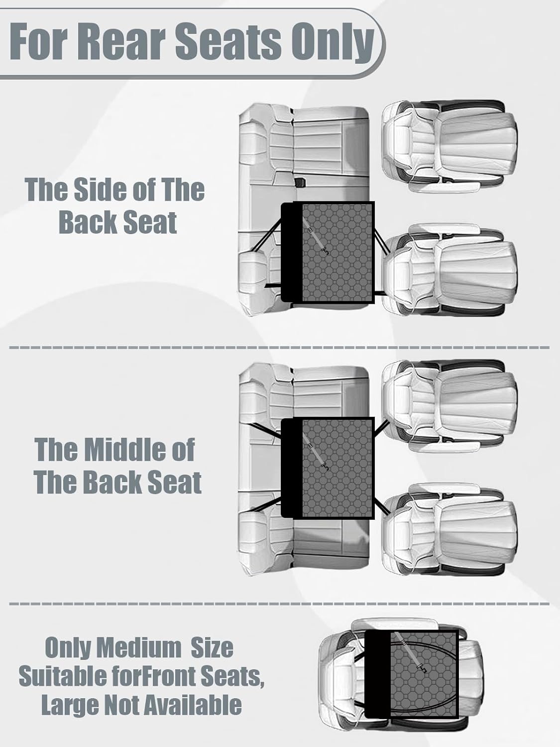 About this item 【Durable Material】The dog car seat cover for back seat is waterproof and anti-scratch.The surface material is easy to clean after getting dirty,both hand wash and machine wash are available.Non-slip design at the backing is used,the dog car seat is not easy to move,and the dog in the dog seat for car is not easy to slide.The pet car seat is made of thicker,hard-wearing oxford fabric,so it is more sturdy.High quality zipper is applied for sturdy use 【More Secure to Prevent Dog From Falling】Four hardened plates have been added to the bottom and front of the dog car seat to make the dog seat more sturdy.It can prevent falling if you brake sharply while driving.And also a seat belt for dog is provided in case that your dog move around or fall off from the dog car seat large 【Suitable For Various Sizes of Dogs】Size of our dog booster seat is 19.6*18.1*11.8 inches.Hard bottom dog seat for car are suitable for almost all sizes of dogs up to 25 LB.The back seat extender is suitable for small to large-sized dogs.Two small dogs can be rest on the pet car seat together if space is enough.Our car dog seat is designed to be suitable for most cars suvs and trucks 【Simple Installation】This dog car seat is very easy to install,just attach the bottom and front mounting plates and zipper it up.And with two adjustable straps,you can install it on the left, right or center of the back seat.This dog seat only occupy half space of your back seat.One passenger can also sit in the back and accompany with pets 【Detail Upgrade】The waterproof material on the bottom is easy to clean while preventing your pet from dirtying your seat,and the mesh design for air circulation on both sides allows your pet to breathe smoothly and see you at all times,giving your pet more peace of mind.Storage pockets on front side.It can be used for a detached harness and toys,convenient for you to put pet daily necessities to save space › See more product details