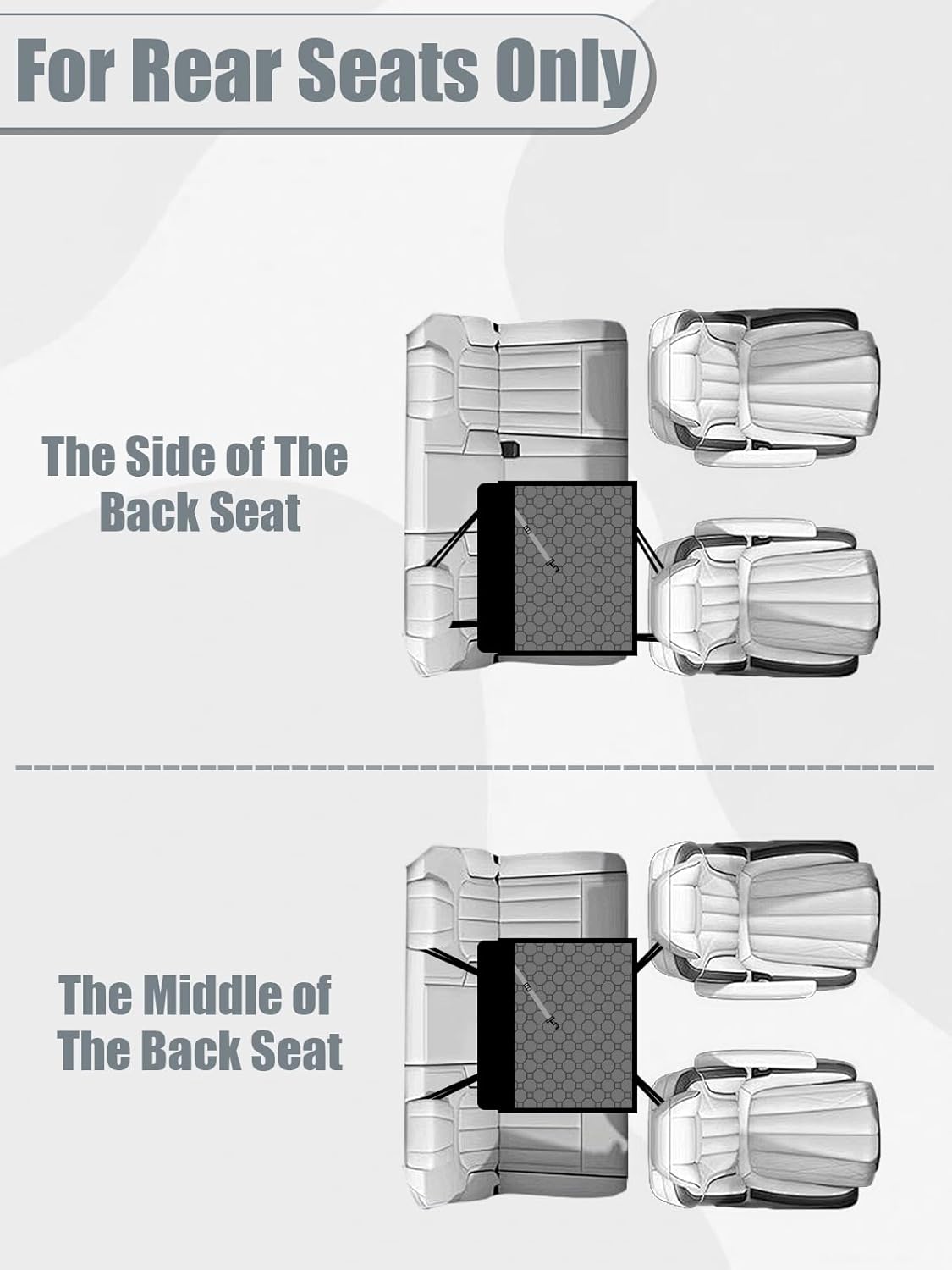 About this item 【Durable Material】The dog car seat cover for back seat is waterproof and anti-scratch.The surface material is easy to clean after getting dirty,both hand wash and machine wash are available.Non-slip design at the backing is used,the dog car seat is not easy to move,and the dog in the dog seat for car is not easy to slide.The pet car seat is made of thicker,hard-wearing oxford fabric,so it is more sturdy.High quality zipper is applied for sturdy use 【More Secure to Prevent Dog From Falling】Four hardened plates have been added to the bottom and front of the dog car seat to make the dog seat more sturdy.It can prevent falling if you brake sharply while driving.And also a seat belt for dog is provided in case that your dog move around or fall off from the dog car seat large 【Suitable For Various Sizes of Dogs】Size of our dog booster seat is 23.6*17.7*14.1 inches.Hard bottom dog seat for car are suitable for almost all sizes of dogs up to 40 LB.The back seat extender is suitable for small to large-sized dogs.Two small dogs can be rest on the pet car seat together if space is enough.Our car dog seat is designed to be suitable for most cars suvs and trucks 【Simple Installation】This dog car seat is very easy to install,just attach the bottom and front mounting plates and zipper it up.And with two adjustable straps,you can install it on the left, right or center of the back seat.This dog seat only occupy half space of your back seat.One passenger can also sit in the back and accompany with pets 【Detail Upgrade】The waterproof material on the bottom is easy to clean while preventing your pet from dirtying your seat,and the mesh design for air circulation on both sides allows your pet to breathe smoothly and see you at all times,giving your pet more peace of mind.Storage pockets on front side.It can be used for a detached harness and toys,convenient for you to put pet daily necessities to save space › See more product details