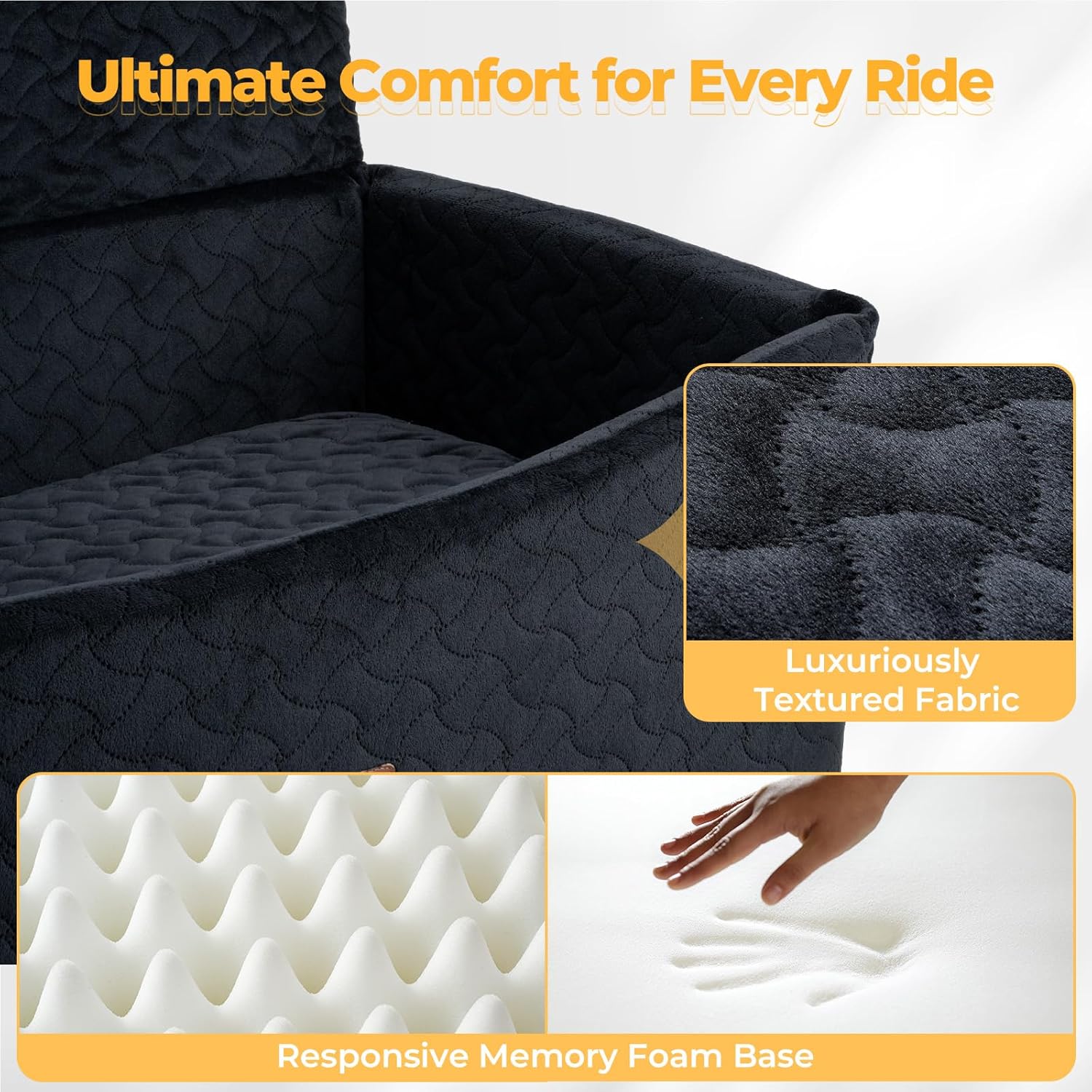 Directions: Say goodbye to cramped corners—your dog finally has a seat designed just for them! This extra-roomy car seat fits pups up to 60 lbs and features a cozy 4-inch memory foam cushion with a high front wall to help keep even the most energetic dogs comfortably in place.Whether you're cruising around town or setting off on a weekend getaway, your furry friend can stretch out, lie down, and enjoy the ride in comfort and style. It’s more than a car seat—it also doubles as a soft lounge bed for indoor use.