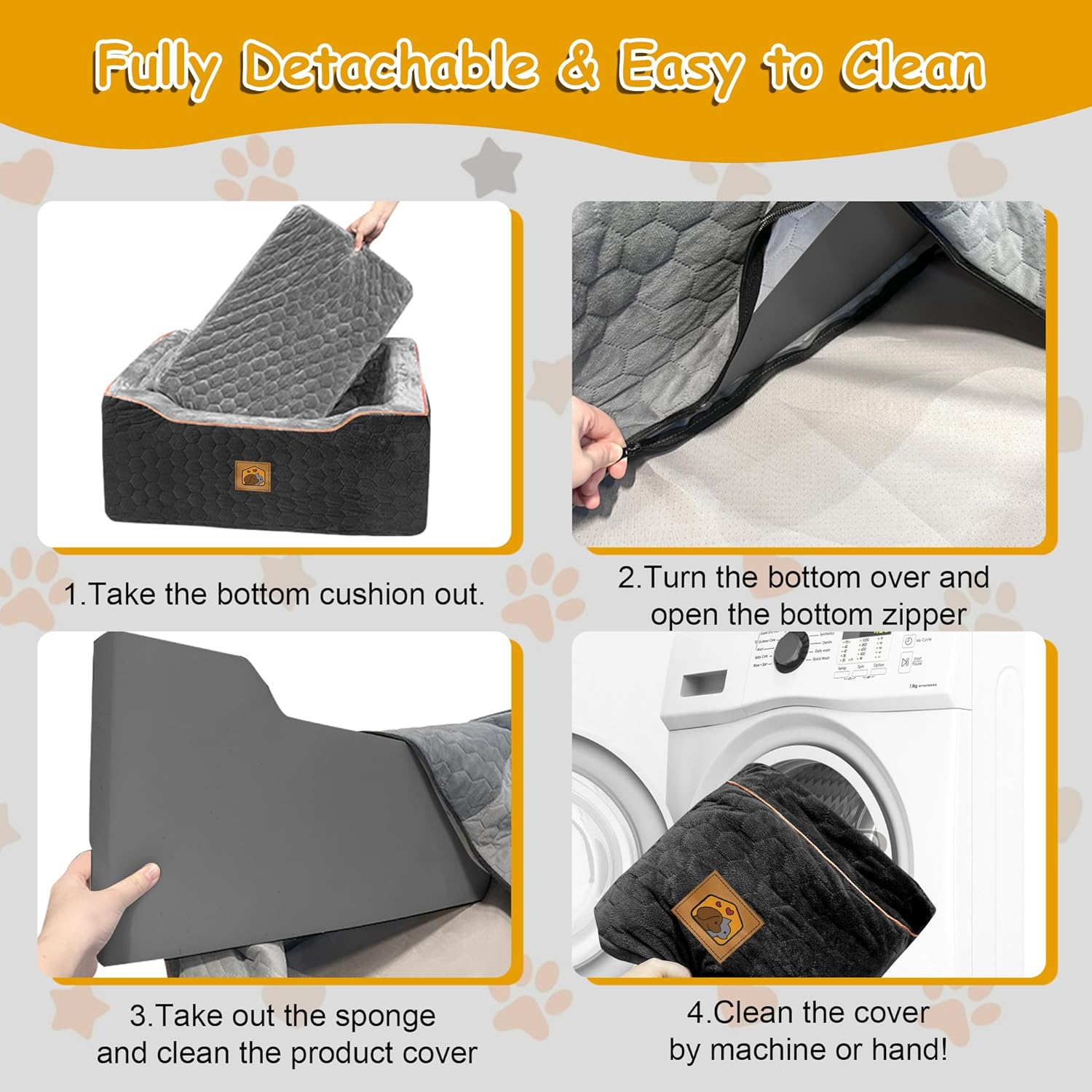 About this item Premium Material for Ultimate Comfort: Crafted from high-quality crystal velvet fabric and high-elastic sponge, our dog car seat offers a plush and cozy environment for your pets. The soft, breathable fabric ensures comfort during long journeys, while the durable sponge maintains its shape and provides excellent support. Multi-Functional Design for Versatile Use: This dog booster seat is perfect for medium to large dogs or two small dogs, fitting seamlessly into the back seat or trunk of your car. It's not just a car seat; it also doubles as a travel dog bed and sofa cushion, making it a versatile addition to your pet's accessories. Enhanced Visibility and Reduced Anxiety: The thick, elevated cushion design allows your pets to enjoy a better view out the window, helping to reduce travel anxiety and motion sickness. Your furry friends will feel more secure and entertained, making car rides more pleasant for both you and your pets. Convenient Storage Solutions: Equipped with two spacious side pockets, this pet car seat provides ample storage for pet snacks, toys, leashes, and other essentials. Keep everything organized and within easy reach, ensuring a hassle-free travel experience. Safety and Stability Assured: Safety is our top priority. The car seat features two secure safety leashes to keep your pets in place and prevent them from jumping out. Additionally, the seat is firmly fixed with straps that go under and around the car seat, ensuring it stays stable and secure during the journey. The entire seat is washable, making it easy to keep clean and fresh. ⚠️ Safety Warning: This product is designed only to provide a comfortable activity space for pets inside the car. The attached leash is intended solely to limit pet movement and does not provide protection in the event of a car collision. This product is for use only under normal driving conditions and should not be considered a crash protection device. › See more product details