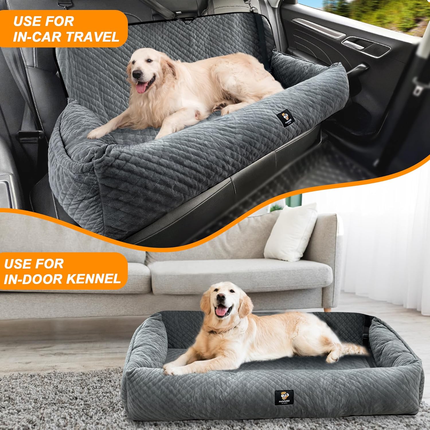 About this item Traveling is full of joy for humans, but it is completely different for pets. We want to provide your pet with a comfortable super soft car travel seat so that they can enjoy a happy journey with you. So we want to provide pets with a home in the car, making them as comfortable in the car as at home, and giving you the best company. 【Dog Car Seat】In order to adapt to more car models and prevent pets from interfering with your driving, we have chosen a size of 45in (length) * 20in (width) for our product. Suitable for almost all types of vehicles, cars, trucks, SUVs. Please choose according to your pet's size 【Soft Car Travel Bed】Dog car seat is made of soft fabric and offers unmatched warmth and comfort. which provides the max comfort to your puppy and brings better sleep to your pet. 【Safety of Dogs】The dog car seat design has two nylon straps that can be adjusted up and down to secure the raised seat. The four sides of this car dog bed are filled with PP cotton, which has good elasticity and can support the pet's body well when braking. So you can focus on driving and enjoy the upcoming beautiful journey. 【Removable and Washable】The high backrest design, the seat from getting dirty and scratched, which means there are no more scratches, hair, or other dirt on your car seat. Car seats can be easily disassembled and can be cleaned by machine or hand, which is fast and convenient without changing the shape of the car seat after cleaning. 【QUALITY GUARANTEE】 We are confident that you will love the pet products we offer. However, if for any reason you are not completely satisfied, please let us know and we will solve the problem for you within 24 hours! washing. Note: The sponge should not be machine-washed. After unpacking, allow the product to expand for 24-48 hours for optimal shape and comfort. › See more product details