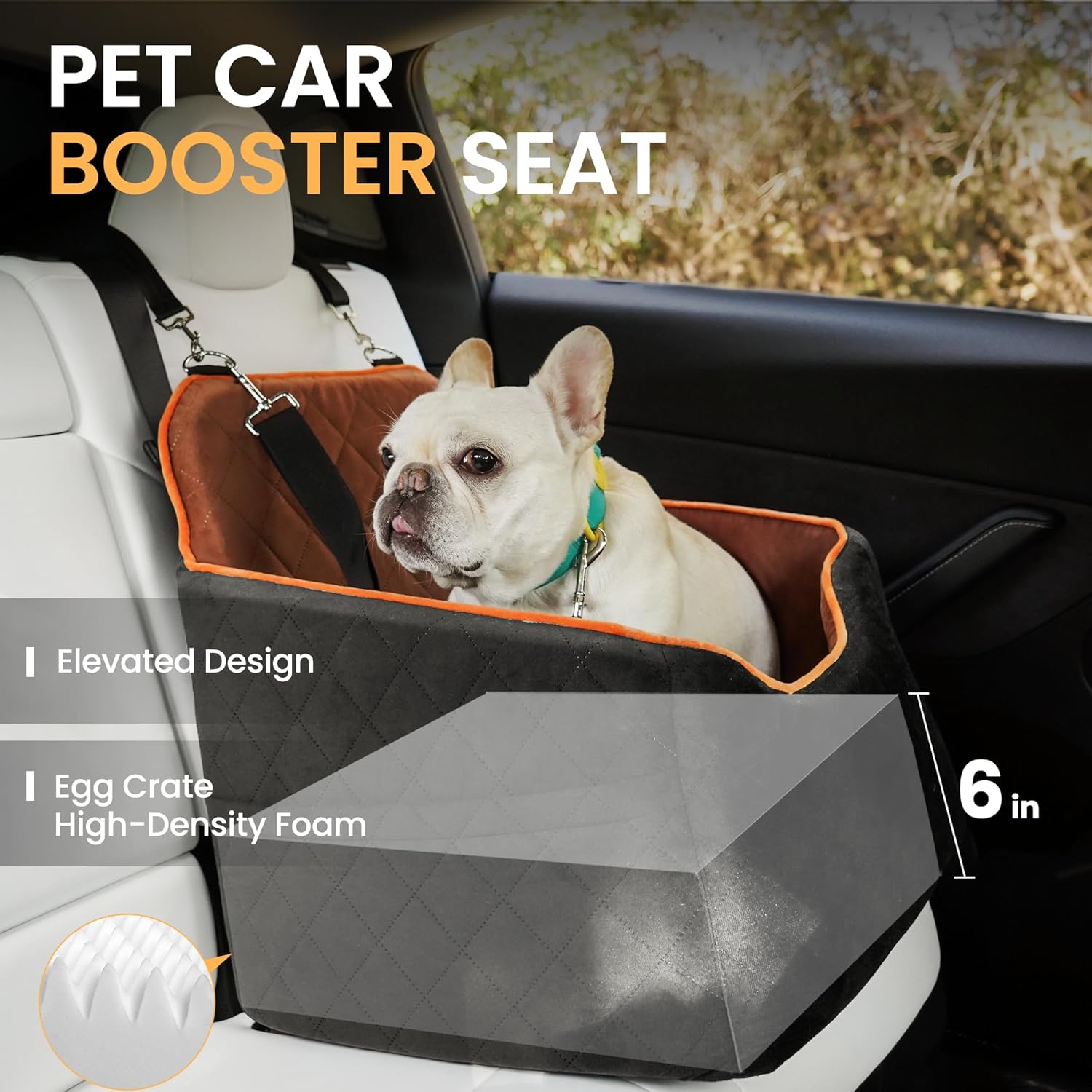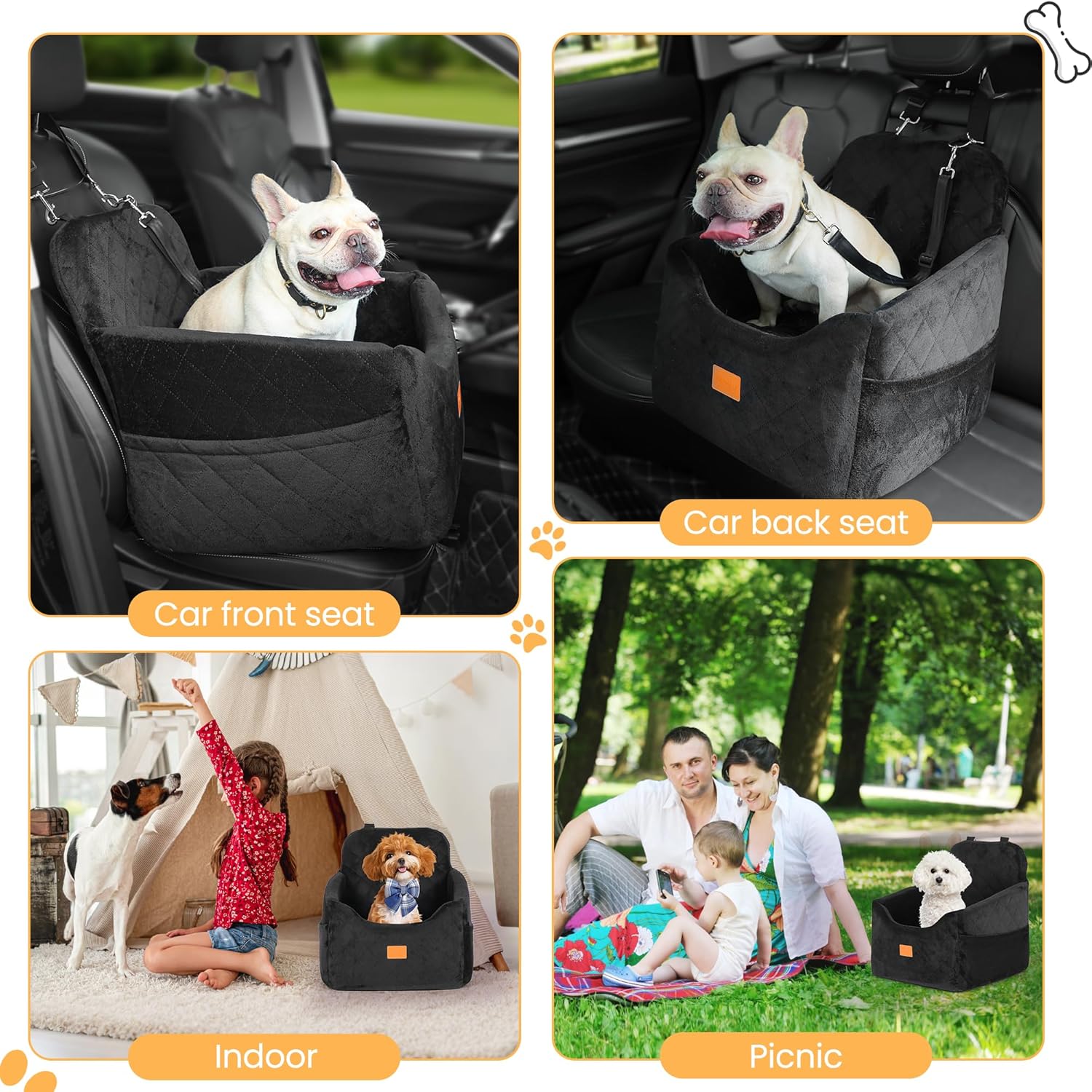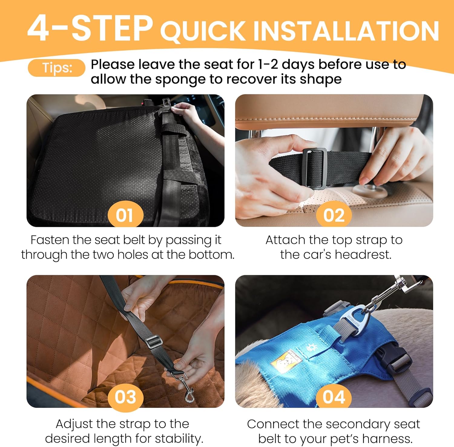 About this item 【Perfect View & Elevated Comfort】This dog car seat raises your pet about 6 inches, giving them a perfect view out the window to enjoy the scenery. The elevated design helps reduce motion sickness and travel anxiety, making every ride in this car seat for dogs more enjoyable for your furry friend. 【Safety & Comfort】Equipped with an adjustable safety leash and non-slip bottom, this dog booster car seat keeps your pup securely in place. The plush cover and high-elastic sponge filling ensure your small dog car seat is as safe as it is comfortable, whether for quick errands or long road trips. 【Perfect Size for Small Dogs】Measuring 18.9"L x 18.9"W x 19.7"H, this pet car seat is designed for dogs under 30lb. It fits most vehicles, including SUVs, sedans, and pickups, and can be installed in the front or back seat to provide a secure dog carseat space for your pet. 【Versatile Dog Seat】More than just a puppy car seat for the car, this booster can double as a cozy pet bed at home or for outdoor camping. Two side storage pockets let you keep treats, toys, and other travel essentials close at hand. 【Easy Clean & Quick Installation】The removable cover of this dog car seats for small dogs unzips easily for machine washing. Installation is simple—thread the car seat belt through the back openings, secure it, and adjust the headrest strap for a snug fit. 【Warm Tips】The dog seat for car comes vacuum-packed; please allow 1–2 days to fully regain its shape. Our customer service team responds within 24 hours if you need any assistance. › See more product details