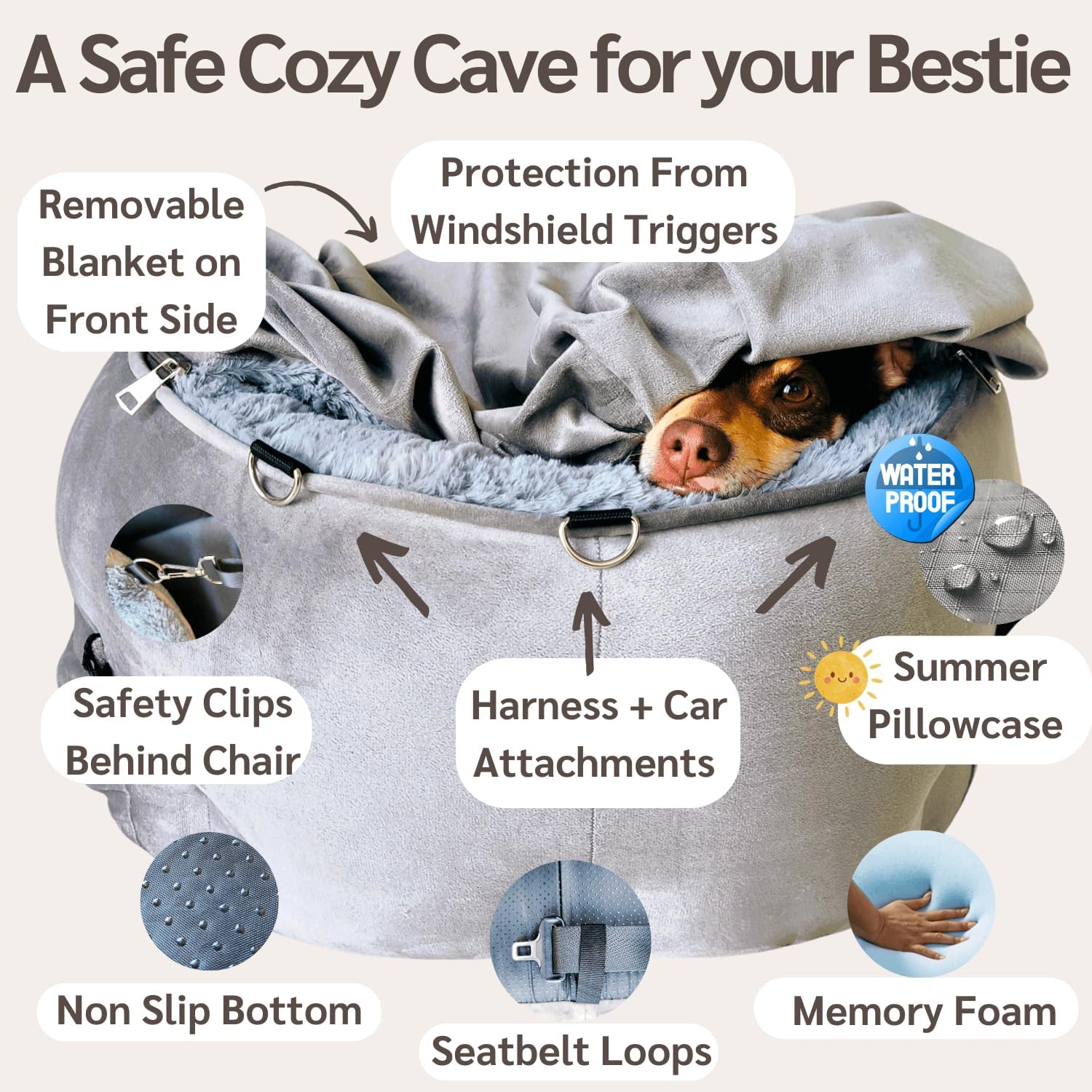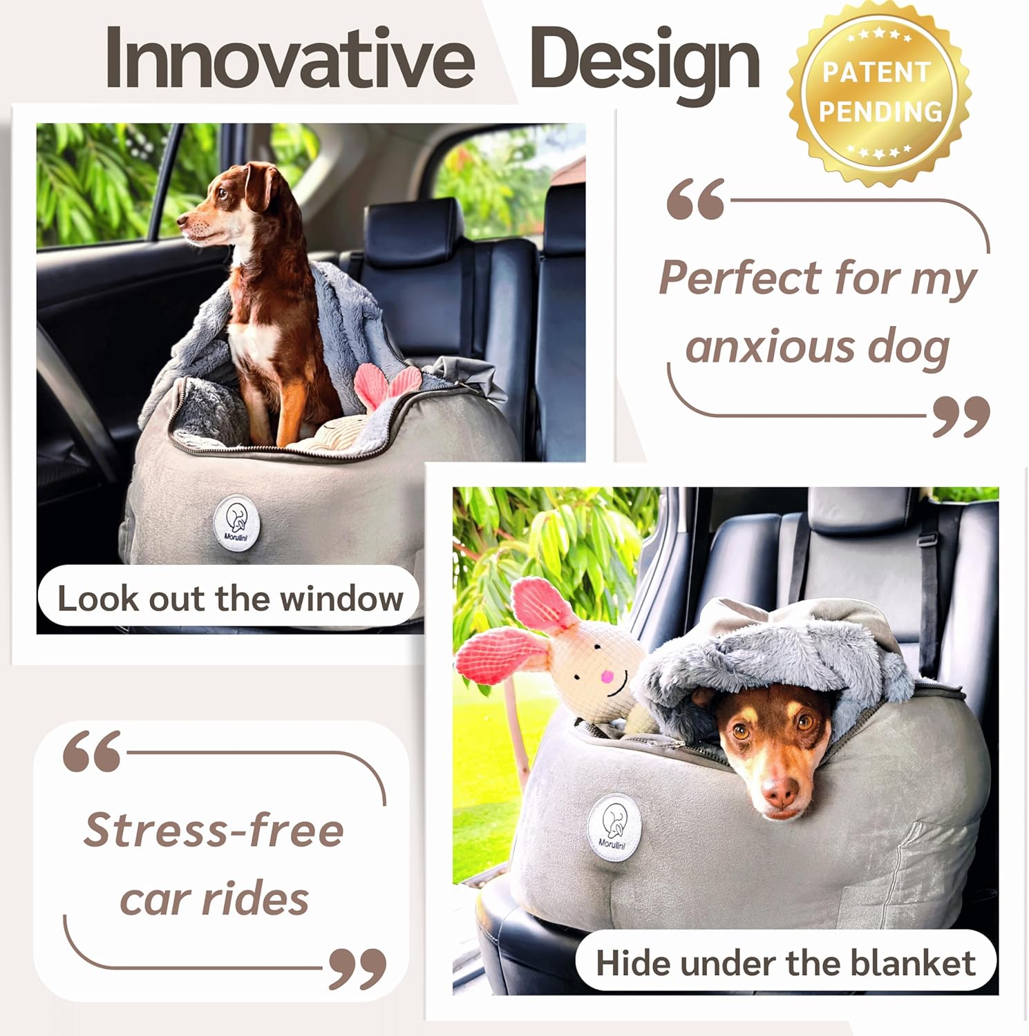 About this item đ PATENT-PENDING DESIGN â NOT JUST A DOG CAR SEAT, A TRAVEL GAME-CHANGER. Not all dogs enjoy rides, but this research-based booster seat is here to change that. Its patent-pending structure features a zipper-removable blanket that creates a cozy, burrowed spaceâoffering warmth, security, and a sense of protection. Perfect for anxious pups, it helps reduce stress and motion sickness by giving them control: they can slip under the blanket or come out on their own, without shifting the cover or distracting the driver. đ€ ORTHOPEDIC SUPPORTâFOR EVERY AGE & EVERY RIDE. This dog booster car seat isnât just comfyâitâs built for long-term health, whether lounging after an epic adventure or gazing out the window. Dual-layer memory foam protects young joints from damage while soothing senior dogs with arthritis and mobility issues. The firmer base provides stability. The perfect balance of soft, yet supportiveâbecause every dog deserves a cloud-like ride. đ A PLUSHIE GIFTâBECAUSE LITTLE THINGS MATTER. Every dog carseat comes with a free plushie, a travel buddy that keeps your pup entertained and happy. Because road trips arenât just about the destinationâtheyâre about making the journey enjoyable. 𩮠FLEXIBLE DESIGN â ADAPTABLE TO YOUR DOGâS PERSONALITY. Whether your pup loves to nap or look out of the window, this dog seat offers two harness attachment optionsâkeeping them secure yet allowing freedom of movement. You can also adjust how much space the blanket covers by opening up the high quality double zipper. And don't forget you can remove the cushion and the memory foam. Itâs designed to fit your dogâs unique travel style. đâïž THE ULTIMATE BURROWâADJUSTABLE TO EVERY SEASON. Small dogs love to dig, burrow, and nestâit's instinct. This car seat for dogs lets them do just that, without distraction. The attached blanket stays in place, no matter how much they sniff, scratch, or burrow, so thereâs no fumbling while driving. Perfect for small breeds like dachshunds, terriers, chihuahuas, italian greyhounds, and puppies. Too warm? Fold the blanket into a pillow or remove it completely to keep your dog coolâeffortless for both you and your pup. â BUILT TO LASTâBACKED BY OUR LIFETIME GUARANTEE. Great design stands the test of time. This dog booster seat for your car is made to last, and we back it with the Morulini lifetime guarantee. Because your dog deserves the best seat in the car. And you deserve peace of mind. đ SECURE & DRIVER-FRIENDLYâNO DISTRACTIONS, JUST PEACE. The blanket stays put, no matter how much your dog digsâno flapping, no shifting. Just a cozy space that keeps them calm and keeps you focused. With two harness straps, seatbelt loops, anti-slip bottom, headrest and chair straps, safety is never a question. Fits in cars, SUVs, and trucksâfront or back seat. And of course it protects your car's upholstery from accidents and muddy paws. đ§Œ FRESH & CLEAN, NO HASSLE. Dogs get messy. Thatâs why this dog seat for your car is machine washable. Just remove the pillow and throw the whole thing in there and wash at a low temperature. Remove and wash the pillowcase along with the rest of the car seat. The protective lining of the pillowcase keeps the memory foam pillow fresh, so your dogâs favorite seat always smells and feels just right. âš COZY ON THE GOâYOUR DOGâS BED, ANYWHERE. This orthopedic car dog bed fits anywhereâhome, cafĂ©s, road trips. Just grab it by the harness straps and bring it with you. Super easy to transport. Easily store it as a pet bed when not in use. With two large side pockets, thereâs space for treats, toys, and travel essentials. The sturdy, soft-sided design makes every place feel like home. đŸ THE PERFECT BOOSTER SEAT, TAILORED FOR SMALL DOGS. Designed for dogs under 30 lbs, this small dog car seat offers the perfect balance of security, comfort, and style. The cozy yet spacious burrow space lets your pup stretch, curl, and nest without feeling cramped. Its sturdy yet flexible build provides soft support while lifting them up for a clear view out the windowâso they can quietly observe the world outside or relax in their cozy spot, undisturbed. Show more âș See more product details