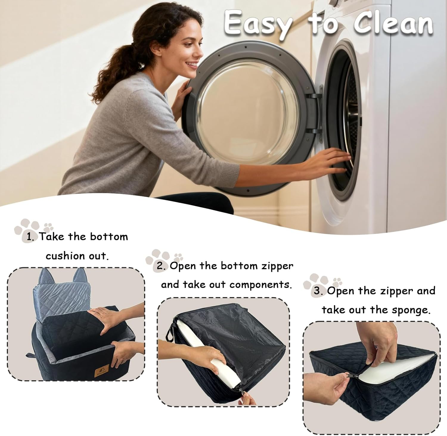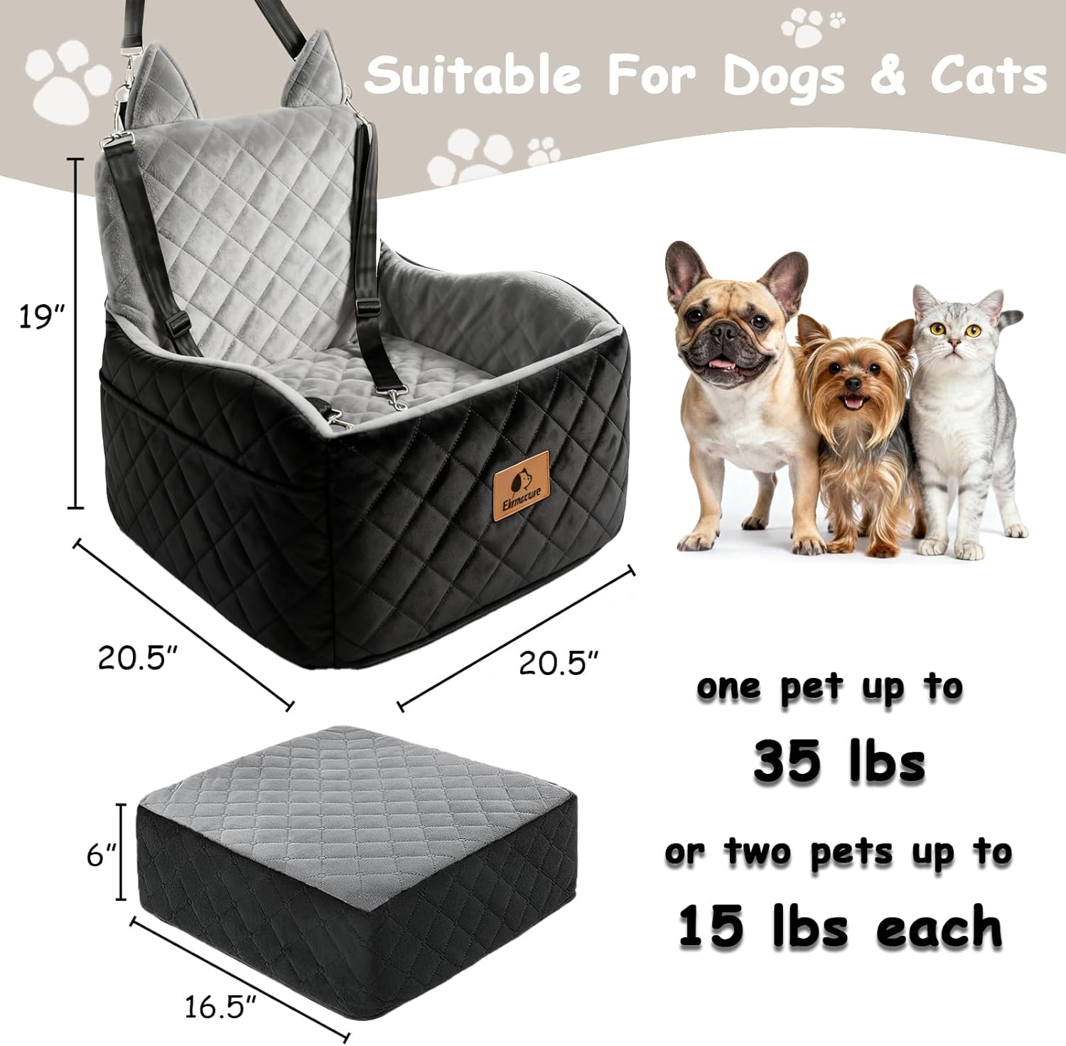 About this item Elevated View for Calmer Rides:This 6-inch elevated dog car seat raises your dog higher for a better view, reducing anxiety and motion discomfort. A true dog booster seat that helps turn stressful rides into relaxed, confident journeys Memory Foam Comfort Support:The high-density memory foam pet car seat cushion provides superior support, prevents sagging, and absorbs road bumps. Perfect for long-distance travel where comfort matters Reinforced Safety & Stability:Engineered with a reinforced frame, non-slip bottom, and dual safety tether compatibility, this car seat for dog keeps even active pups securely in place. No sliding, no wobbling—just safe, steady travel Multi-Scene Use:Perfect for small and medium dogs up to 35 lbs, this versatile dog car seat isn’t just for rides—it becomes your pup’s favorite cozy bed. Whether in the car, at home, or outdoors, your dog can relax with the same familiar comfort and sense of security, making every adventure stress-free and enjoyable Clean Car, Clean Seat:Muddy paws? Drool? No worries. The removable, machine-washable cover keeps your dog car seat fresh with minimal effort. Adventure more, clean less Installed in Minutes:Quick seatbelt-thread installation means fewer steps and a faster start to every trip › See more product details