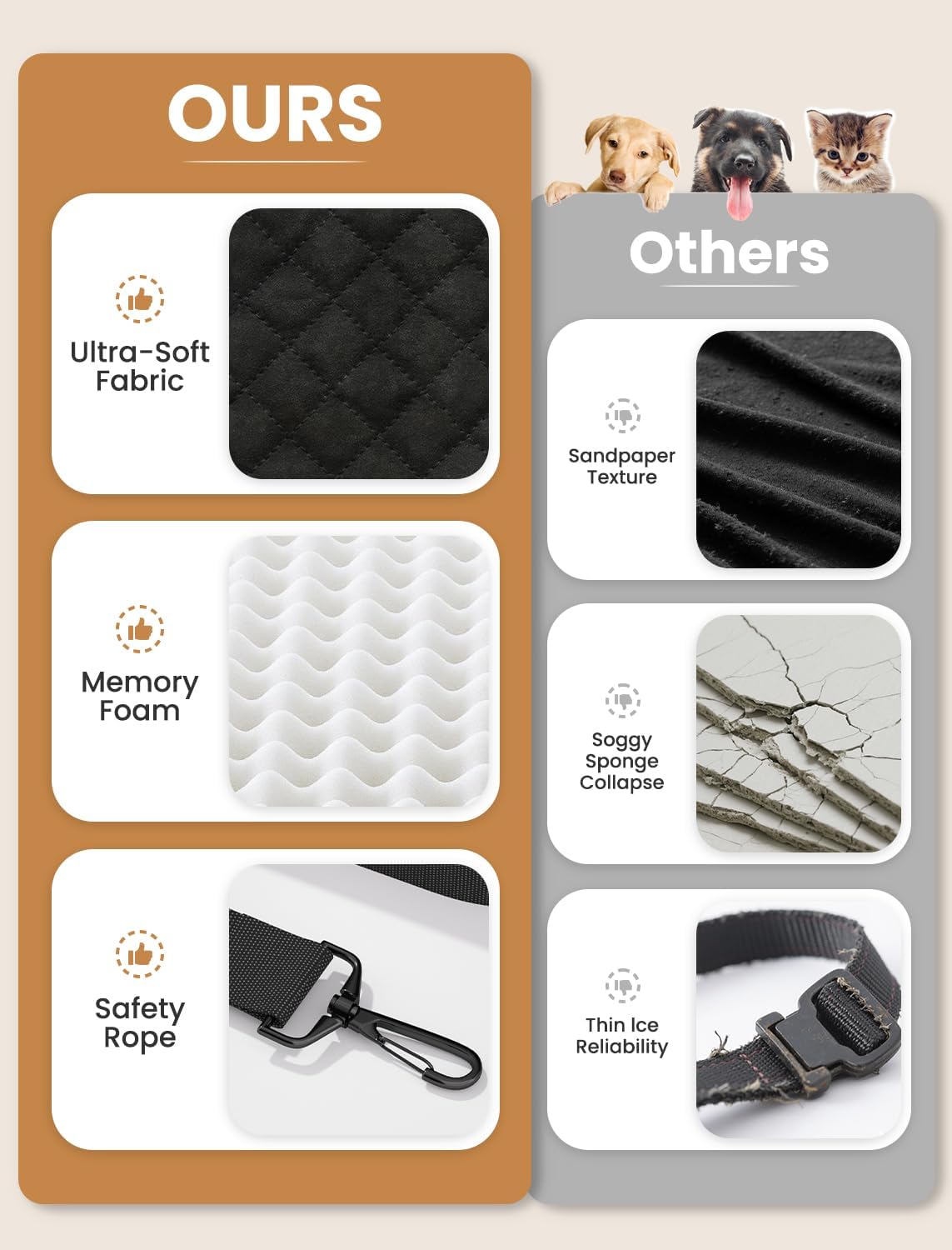 About this item Safety First Design: Give your furry copilot peace of mind! Our dog car seat features a reinforced, secure safety harness slot, impact-absorbing structure, and non-slip base, ensuring your pup stays protected and stable during every journey. Cloud-Like Comfort for Miles: Let your best friend travel in ultimate relaxation. The plush, premium-grade memory foam in this puppy car seat contours perfectly to your dog's body, reducing pressure points and fatigue for truly blissful car rides. Hassle-Free Setup in Seconds: Adventure starts now, not after complicated assembly! Our easy-install dog bed for car features adjustable straps and simple buckles that securely fasten to your car's seatbelt in moments, getting you both on the road faster. Stress-Free Ride, Happy Tail Wags: Minimize bumps and anxiety for your anxious adventurer. The shock-absorbing memory foam core in this dog car seat medium sized dog smooths out road vibrations, creating a calm and serene travel experience that keeps tails happily wagging. Adventure-Ready & Effortlessly Clean: Spills and muddy paws? No problem! The durable, machine-washable cover on our Dog Car Seat makes cleanup simple after every exciting outing, so you're always ready for the next memory-making drive with your furry companion. › See more product details