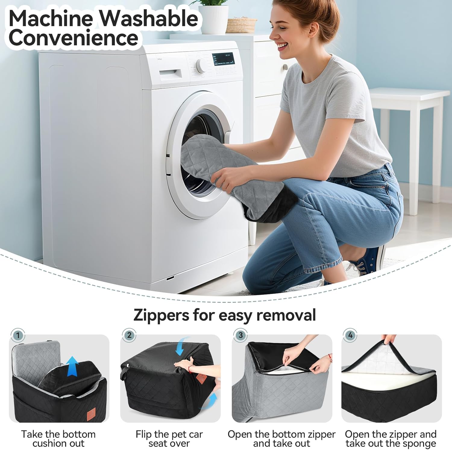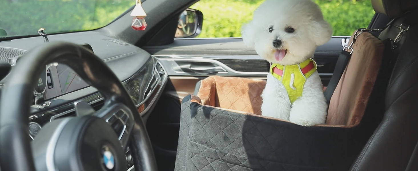 About this item Dog Booster Seat:The interior of the elevated dog car seat has a cushion that is approximately 6" high.It effectively slows down the bumpy feeling of travelling for your pet, and also heightens your pet's view.The car seat also comes with dog leashs and top safety strap, which when fitted and used correctly will protect your pet whilst travelling. Ideal Size:The demension of dog car bed is 19.6"*19.6"*X19.6"(50*50*50cm).The puppy car seat can accommodate all types of small or medium dogs up to 35 pounds.It is designed to fit snugly in the front or back seat of cars, trucks, SUVs, and more. Comfort:With dense memory foam,this small dog car seat provide optimal support during car rides.The extended backrest is designed to soften the impact during braking.The high-quality breathable & ultra-soft fabric keeping your pet warm and cozy while ensuring the travel seat for dogs durability.This is a great dog seat for traveling. Detachable and Washable:This pet car seat is very easy to clean,with its fully detachable design.The dog bed has a built-in sliding zipper, just remove all the foam, and then machine wash the seat covers.The bottom of the booster seat is waterproof, protection against accidents. Please note that the inner foam is not washable. Multifunctional Use: Not just a dog car seat, our product offers multiple uses. It can provide pets with comfortable rest, whether as dog bed at home, outdoors, or while traveling. This is an indispensable pet bed for pet owners. After receiving package, Please leave it for 24h to 48h for rebound. › See more product details