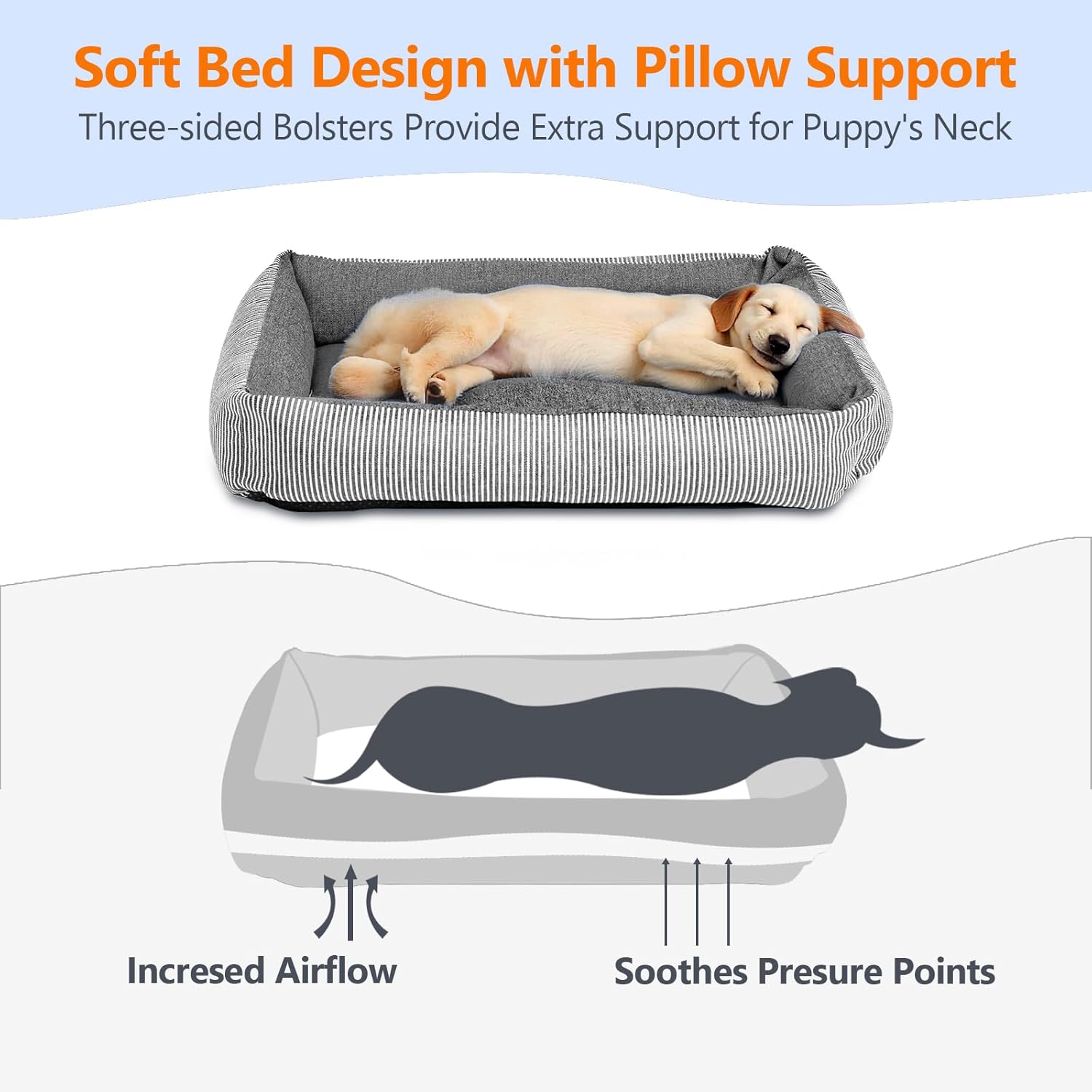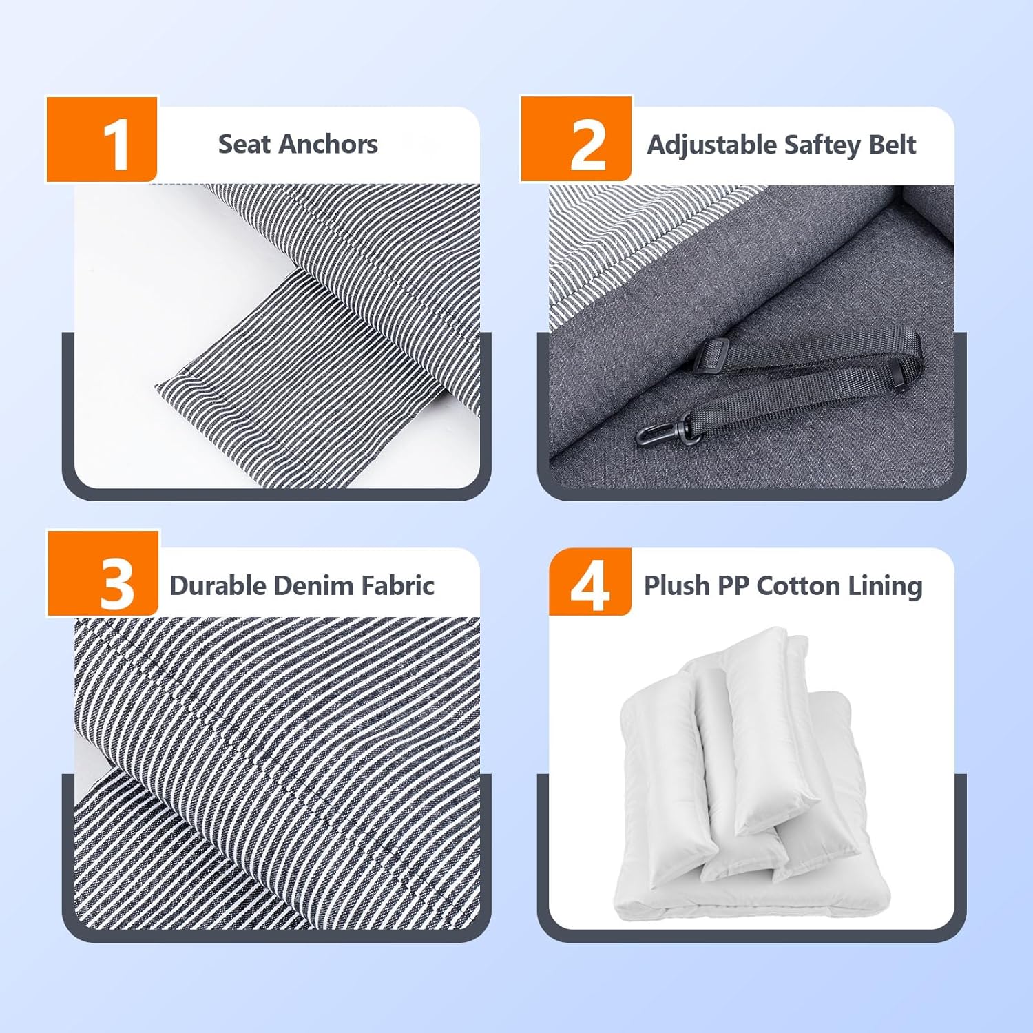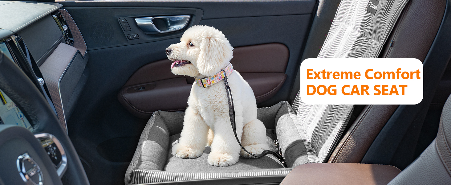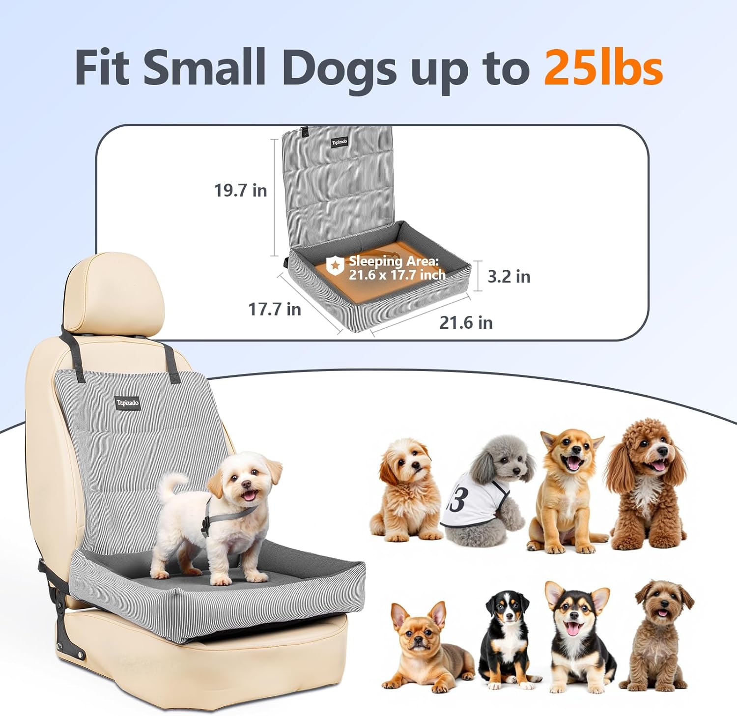 About this item ✅【Extreme Comfort】- Our dog car seat is made from high-quality, durable striped fabric that can withstand rough play while remaining soft and cozy. It's filled with Polypropylene cotton, which offers superior breathability, moisture-wicking properties, and excellent resilience. This filling provides exceptional support for your pet's joints and muscles, promoting travel sleep. ✅【Soft Bed Design】- This small dog car seat features three-sided bolsters that provide extra support for your pet's neck and head, helping them enjoy a peaceful sleep during car travel. The surrounding sides encourage your dog to snuggle up and rest comfortably. ✅【Non-Slip Backing & Adjustable Saftey Belt】- This dog booster car seat is equipped with a dense non-slip backing, offering superior anti-slip performance. It also features one reinforced strap at the back of this seat for securing to car seats, providing stability and preventing sliding. It ensures a safe and secure environment for your car, even during quick turns and over speed bumps. Make sure to buckle up your pup with the adjustable safety belt for safe travels. ✅【Fit Small Dogs up to 25lbs】- Our pet car seat has an overallsize of 21.6" x 17.7", making it compatible with the majority of front seat in standard cars, trucks and SUVs. Backrest flaps provide full coverage to protect your entire seat. Our dog car seat suitable for small dogs weighing up to 25lbs. ✅【Care Instructions】- Our car dog bed is designed with a removable and washable cover featuring a convenient zipper closure for easy cleaning. Prior to washing the cover, simply remove the PP cotton inner liner for effortless maintenance. › See more product details