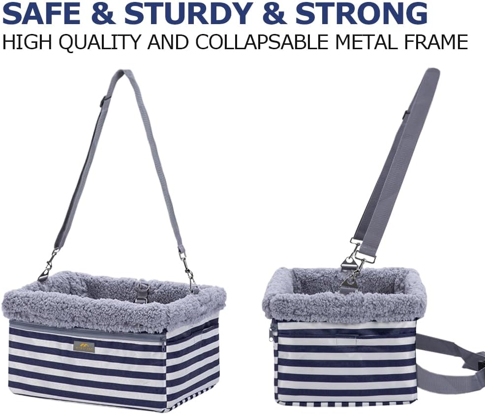 About this item METAL FRAME DOG BOOSTER SEAT: Internal Collapsible Metal frame allows MARSLABO dog car seats for small dogs raised up to the window level safely, providing an elevated and unobstructed view for your pet. KEEP YOUR PET SAFE - Our dog booster seat for small dogs features an adjustable leash to clip from inside the booster to their collar. This ensures that your beloved pup stays put for the duration of your travel, giving you peace of mind while keeping your dog safe. QUICK SETUP: Marslabo Pet Car Seat is easy to install and remove, folds flat for storage. Built-in adjustable straps allows Car Seat for Dogs fitting in variable vehicles either front or rear seats quickly and securely. EASY TO CLEAN: Our small dog car seat featured with double-layer waterproof oxford, a removable soft plush liner which can be easily removed for hand or delicate machine washing. Help to keep your car clean and fresh. Sizing & Fit - Recommended for small dogs up to 20 lbs. Dimensions of dog booster seat: 13D x 16W x 9H inches. Please measure your dog before purchase. › See more product details