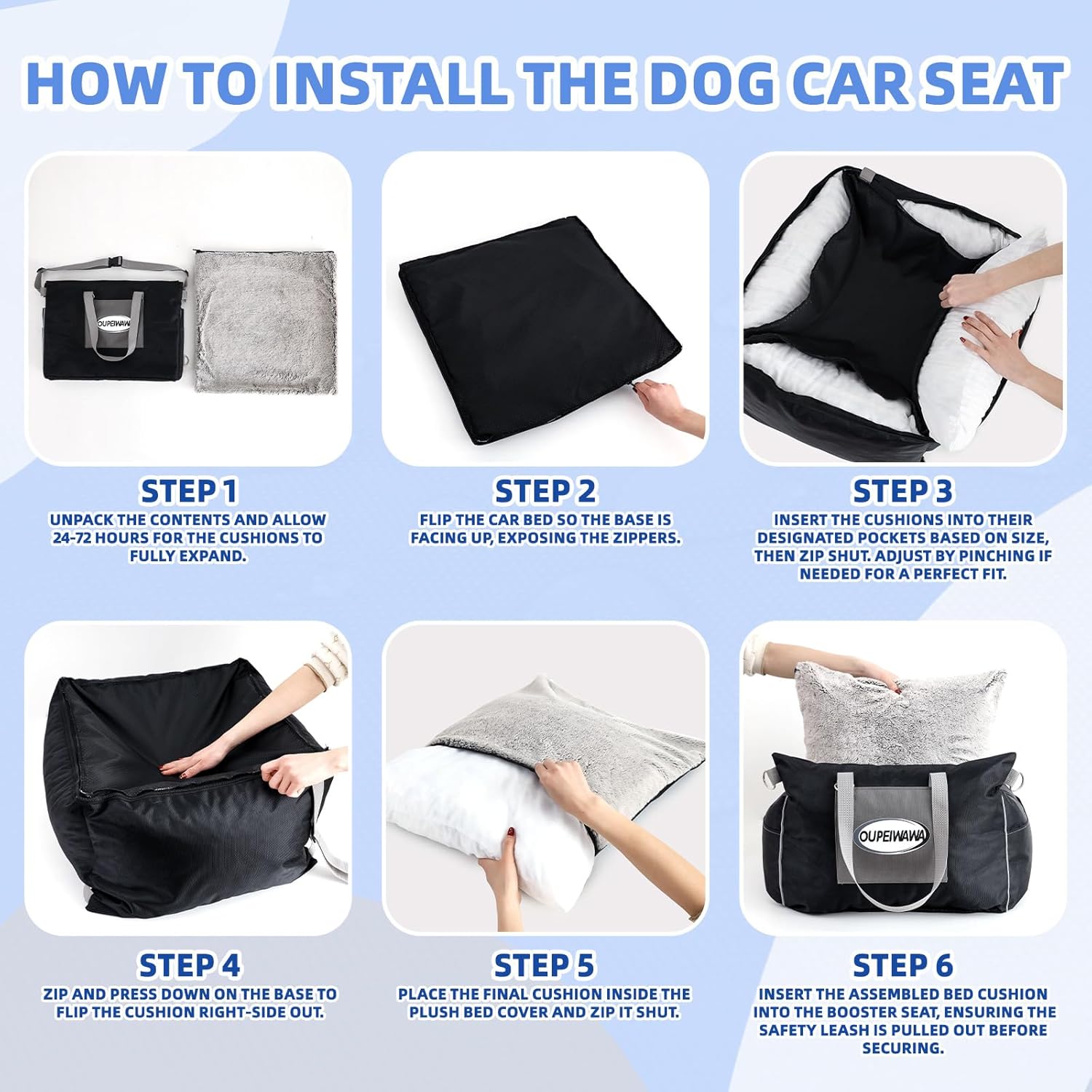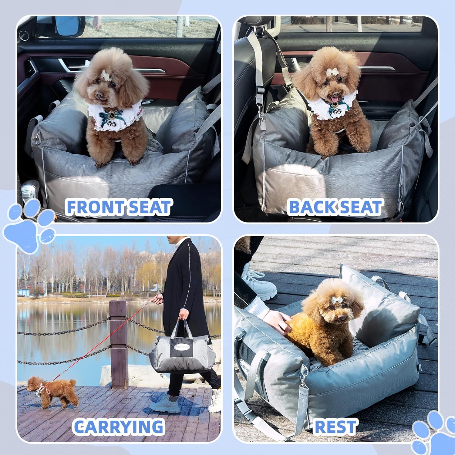About this item Ultimate Pet Safety:Keep your furry friend secure with our dog car seat, featuring four protection methods and premium buckles. This small dog car seat ensures pets under 27 lbs stay cozy and safe during every ride, whether it's daily travel or long trips Comfortable Memory Foam Bed: Our dog bed for car combines chopped memory foam and polyester fiber for optimal comfort. Designed as a puppy car seat and pet carrier, it relieves joint pressure while giving your dog or cat a soft resting place on the road Waterproof and Easy to Clean: This dog booster car seat features a waterproof bottom and water-resistant cover, protecting against accidents. With fully removable filling and sliding zippers, the dog car bed is machine washable and easy to maintain Universal Fit for Travel:Designed for small and medium pets, this pet car seat fits snugly in the front or back seat of most cars, SUVs, and trucks. Its portable design also makes it a perfect car dog bed and cat car seat for indoor and outdoor adventures Versatile Storage and Use: Large pockets on both sides store essentials like leashes and toys. Whether used as a dog carseat, dog car seat boosters, or a travel dog seat for car, it keeps your pet comfy, organized, and ready for every trip › See more product details