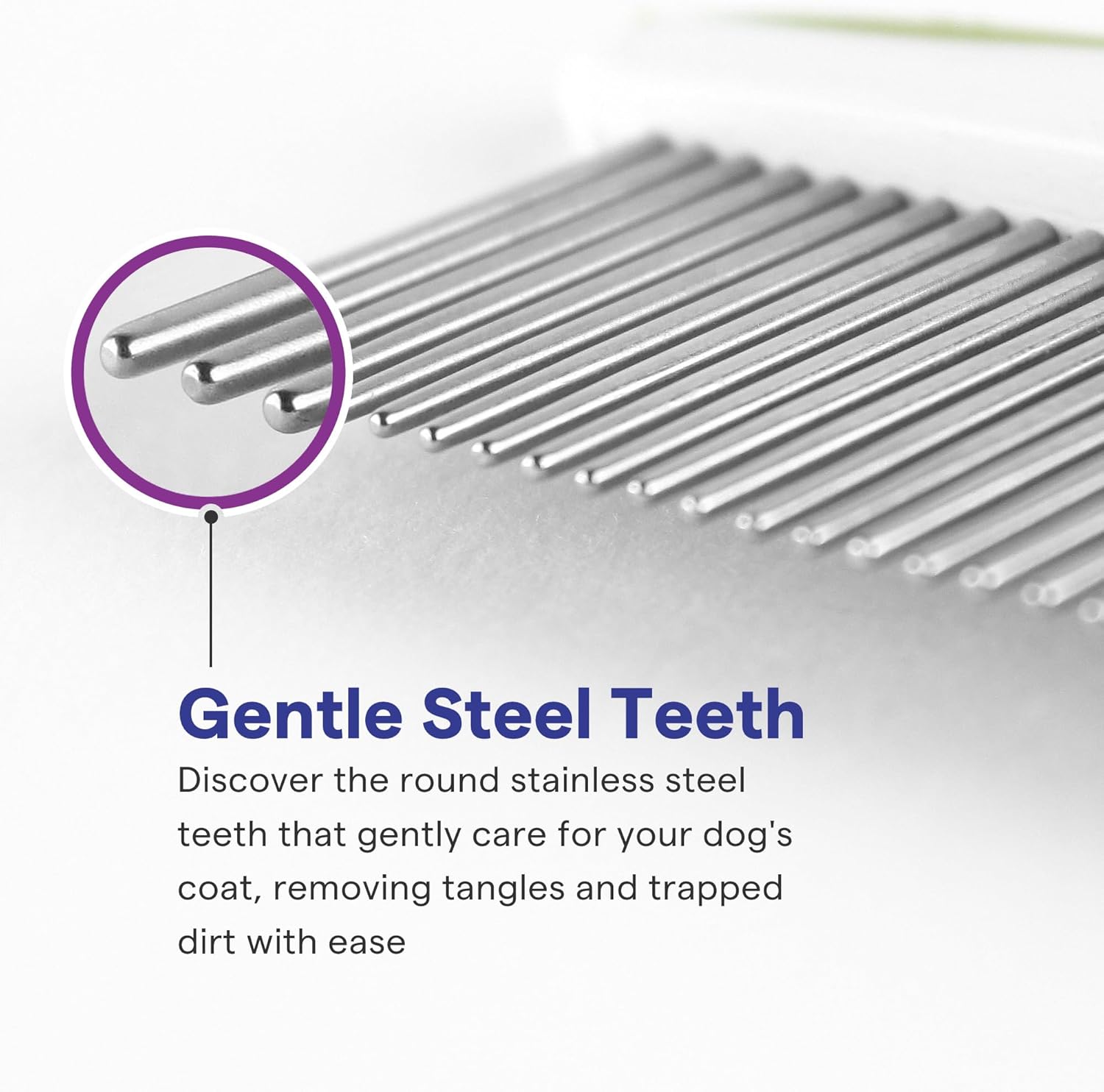 About this item ROUND & GENTLE COMB TEETH: Unlike dematting combs with sharp teeth, this dog grooming comb features round teeth that break up tangles +effectively remove loose hair, dander & dirt trapped beneath fur. ERGONOMIC NO-SLIP HANDLE: Finished with a rubbery grip, our grooming comb is safer & easier to use than most groom tools. The non-slip coating prevents slippery accidents to keep you & your pet safe. IMPROVES OVERALL PET HEALTH: Designed to gently massage your pet's coat, the anti-scratch teeth on our dog & cat comb naturally support the health of your furry best friend by boosting circulation. COMB COMES WITH FREE EBOOK: DIY pet grooming can be a bit tricky if tools are not used correctly, which is why every SP pet hair comb includes a download of our helpful instructional guide. RISK-FREE LIFETIME GUARANTEE: We firmly stand by the lasting quality of our pet grooming tool. If for any reason you're not 100% happy with it, reach out to us to receive a refund or replacement. › See more product details