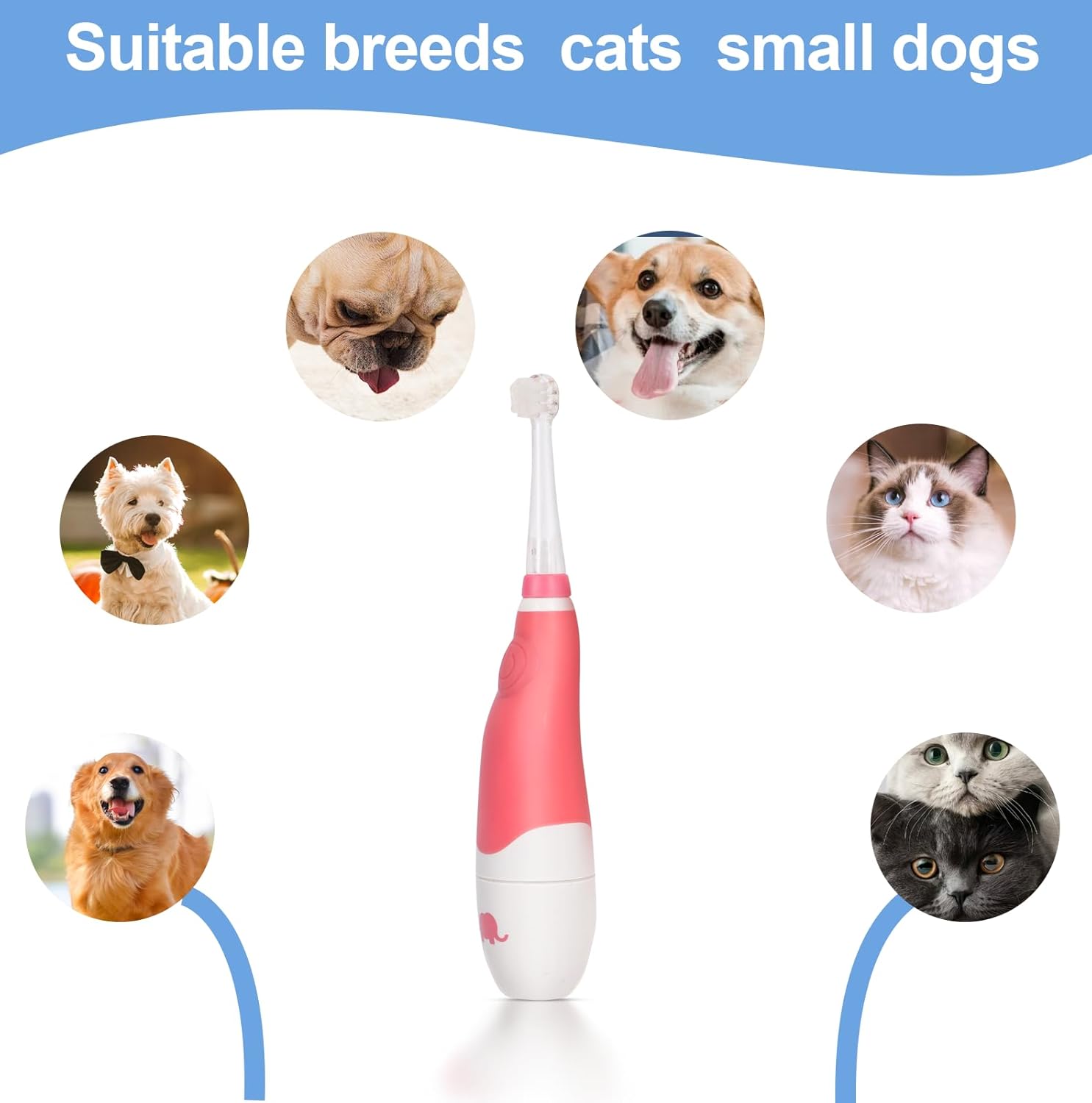 • Silent design Considering that many pets resist brushing their teeth due to the loud sound of electric toothbrushes. Our pet electric toothbrush has been specially designed for noise reduction. Multiple tests have been conducted on pets to ensure that they do not feel resistant to the sound of electric toothbrushes.