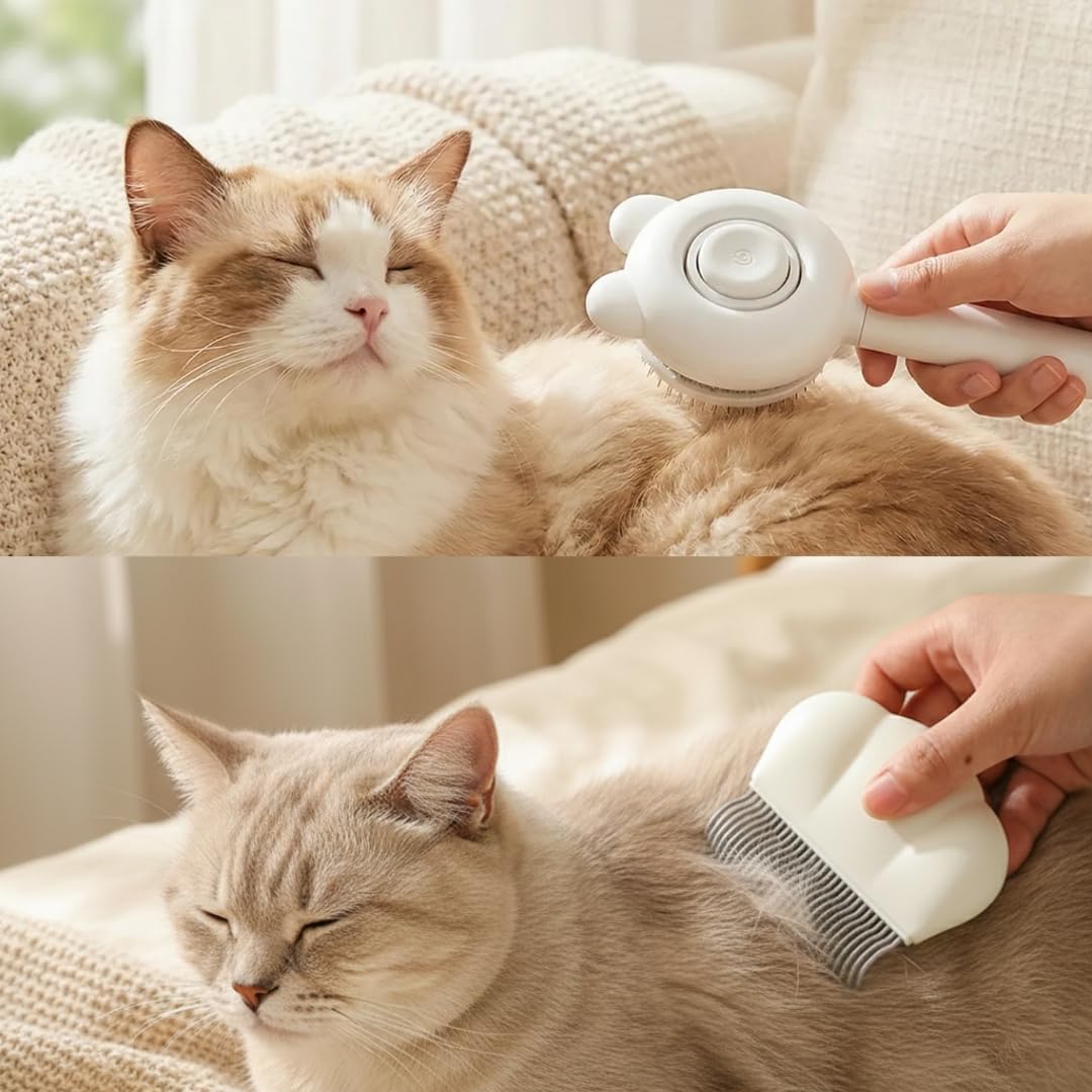 The Ultimate Grooming Master Duo Set: End the War on Fur Today! Are you still struggling with never-ending shedding, stubborn undercoats, and tangled knots? With the Grooming Master Duo Set, you gain total control over your pet's coat and strengthen your loving bond. This 2-in-1 system is scientifically designed to provide the perfect balance between professional deep cleaning and gentle daily care. Key Feature 1: Dual-Care Solution for All Your Needs Professional Deshedding (Slicker Brush): Use the high-performance Deshedding Brush for powerful removal of dead hair, undercoat, and severe tangles. Essential for double-coated breeds and heavy shedding periods. Daily Bonding & Massage (Shell Brush): Use the Silicone Shell Brush for frequent, gentle grooming that helps build trust. It provides a comfortable, 'allogrooming'-like sensation, eliminating brushing resistance. Professional Deshedding Brush: Power & Precision This is the tool you need for proper, deep grooming. Our 140° curved tip design ensures the optimal angle for brushing, neatly gathering hair onto the comb without letting it fly everywhere. The one-button push mechanism cleanly separates caught hair instantly, guaranteeing effortless and hygienic self-cleaning. Silicone Shell Brush: Gentle Care & Essential Bath Tool More than just a comb, the Shell Brush acts as a gentle massager. Its soft silicone bristles minimize skin irritation while stimulating healthy blood circulation. Use it as an essential bath time tool—it helps create a rich lather and efficiently washes away dead hair and loose fur along with the water, providing a relaxing spa experience for your beloved pet.