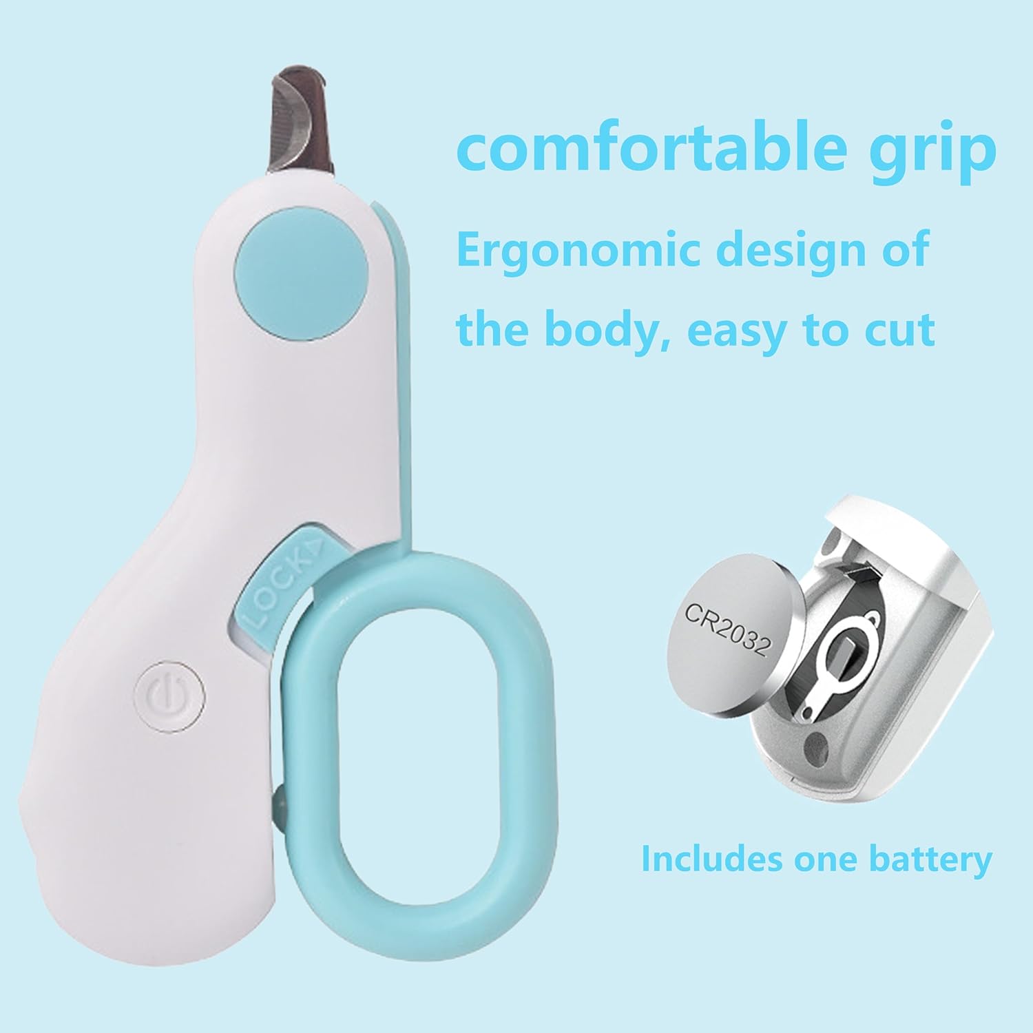 Dog & Cat Pets Nail Clippers and Trimmers, LED Nail Clippers with Light, Precision Angled Blades & Steady Grip , Rofessional Grooming Tool for Pets (Blue)