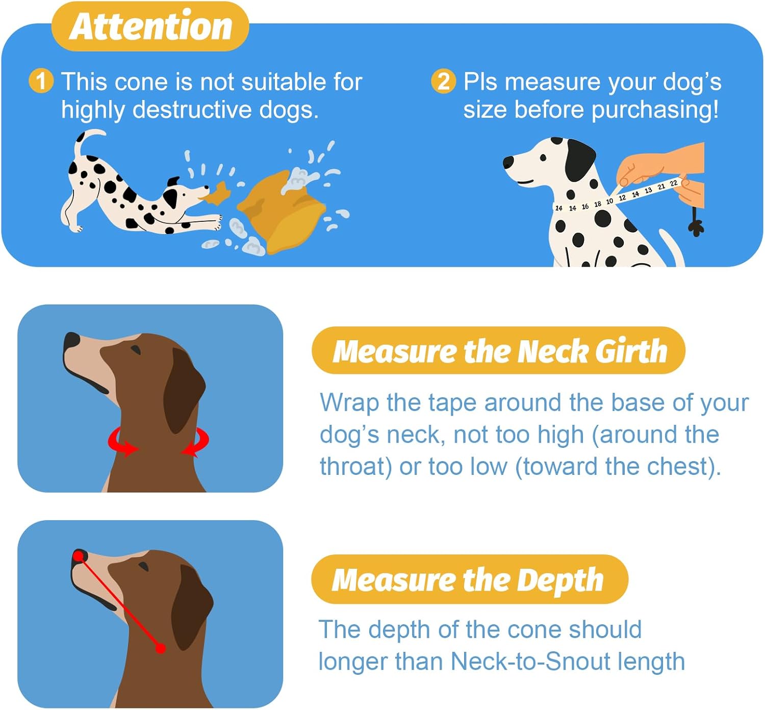 Effective Protection and Stop Licking: This cone-shaped dog recovery collar provides wider coverage than inflatable dog cones, effectively preventing your pet from licking or biting wounds. Ideal for post-surgery recovery, neuter or spay aftercare, hot spots, skin conditions, grooming, and more. A must-have e-collar for dogs after surgery to speed up healing.