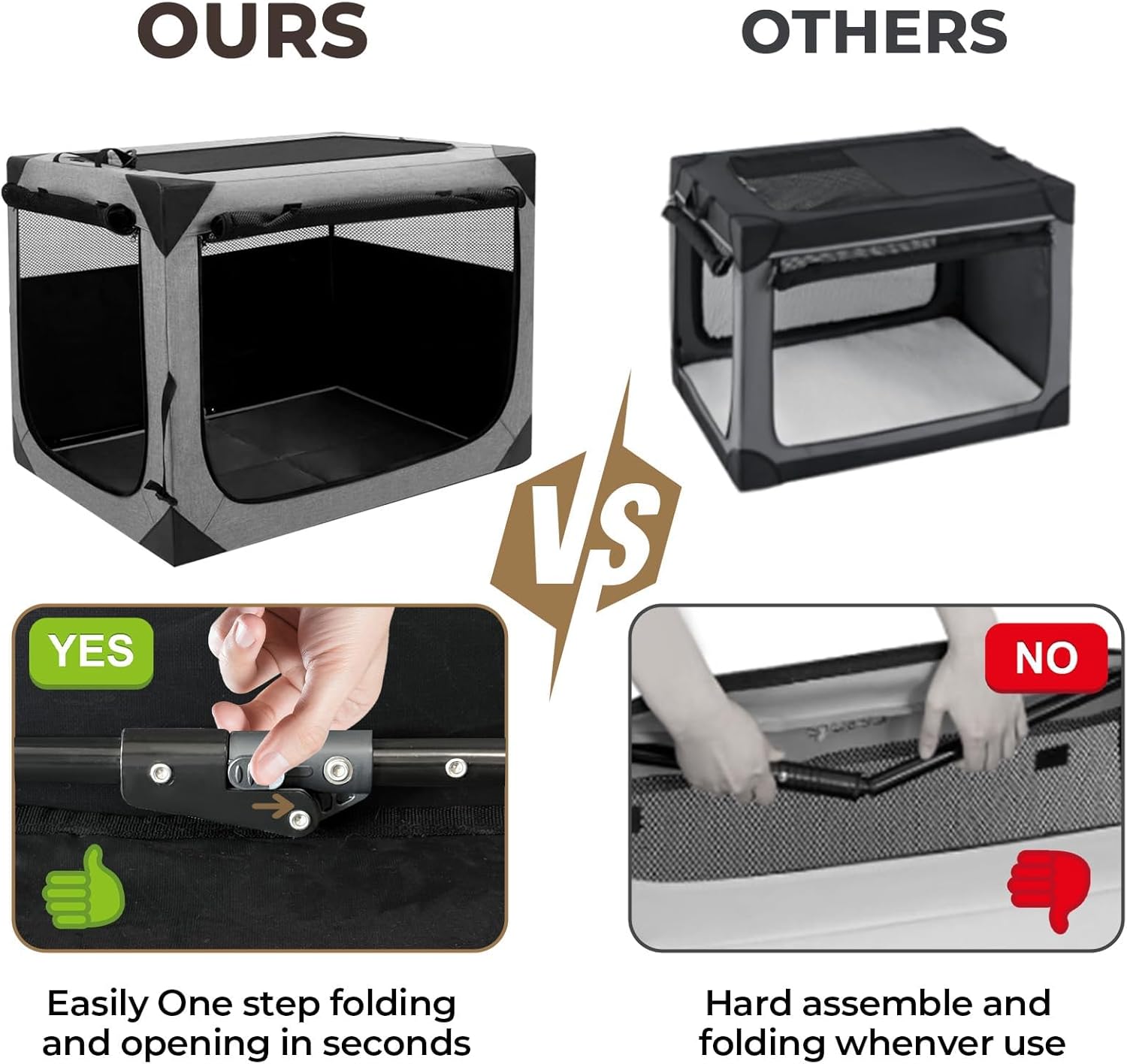 This medium dog crate is specifically designed to offer a comfortable and safe haven for your beloved canine companion. Constructed from durable 620D Oxford cloth, this soft dog crate is not only portable but also collapsible, ensuring convenience whether you are at home or traveling. The three-door design allows easy access for your dog while providing ample ventilation. Perfectly sized at 36 inch long, 25 inch wide, and 25 inch high, it accommodates medium-sized dogs effortlessly. Measures: 36 inch L x 25 inch W x 25 inch H. Ideal for both indoor and outdoor use, this travel dog crate ensures your pet's comfort during trips without sacrificing style or functionality. Featuring dark gray fabric that complements any decor, the crate blends seamlessly into various environments. This portable dog crate serves as an essential accessory for dog lovers who appreciate practicality combined with elegance. Built with durability in mind, our product stands out among other dog kennels and crates available on the market. Providing safety and peace of mind, it becomes a reliable part of your daily life when caring for your furry friend. With its collapsible structure, this soft dog crate can be easily folded and stored away when not in use, making it an indispensable item for those always on the go. Embrace the ease and sophistication of our medium portable dog crate, where design meets necessity to cater to all dog enthusiasts.