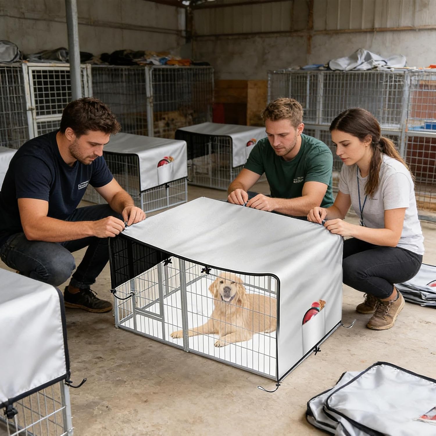 UV-Resistant Kennel Shield: This dog kennel cover is designed with a silver reflective top to block UV rays effectively, creating a clean and safe space for pets while maintaining a cooler interior under direct sunlight in your backyard or patio area Versatile Applications: With its twofold role as a flat mat and outdoor dog bed cover, this kennel cover ensures maximum comfort for small to large dogs while shielding surfaces from pet hair and debris, suitable for everyday household or adventure scenarios Easy Installation: The dog cage cover fits seamlessly into backpacks or suitcases, featuring a compact form that simplifies storage and allows rapid installation, enhancing convenience for pet travel Secure Fix: The dog crate cover adapts to various weather terrains, ensuring your pet's comfort in any season with its adjustable straps that provide a snug fit for most crate sizes, making it ideal for outdoor travel or backyard use while protecting your furry friend from harsh elements and creating a comfortable sheltering space Sturdy Cloth: The crate cover crafted from 210D Oxford cloth with a UV protective coating ensures enduring use while resisting tear and abrasion, protecting your crate in outdoor environments against harsh sunlight and daily wear for enhanced resilience and aesthetic appeal › See more product details