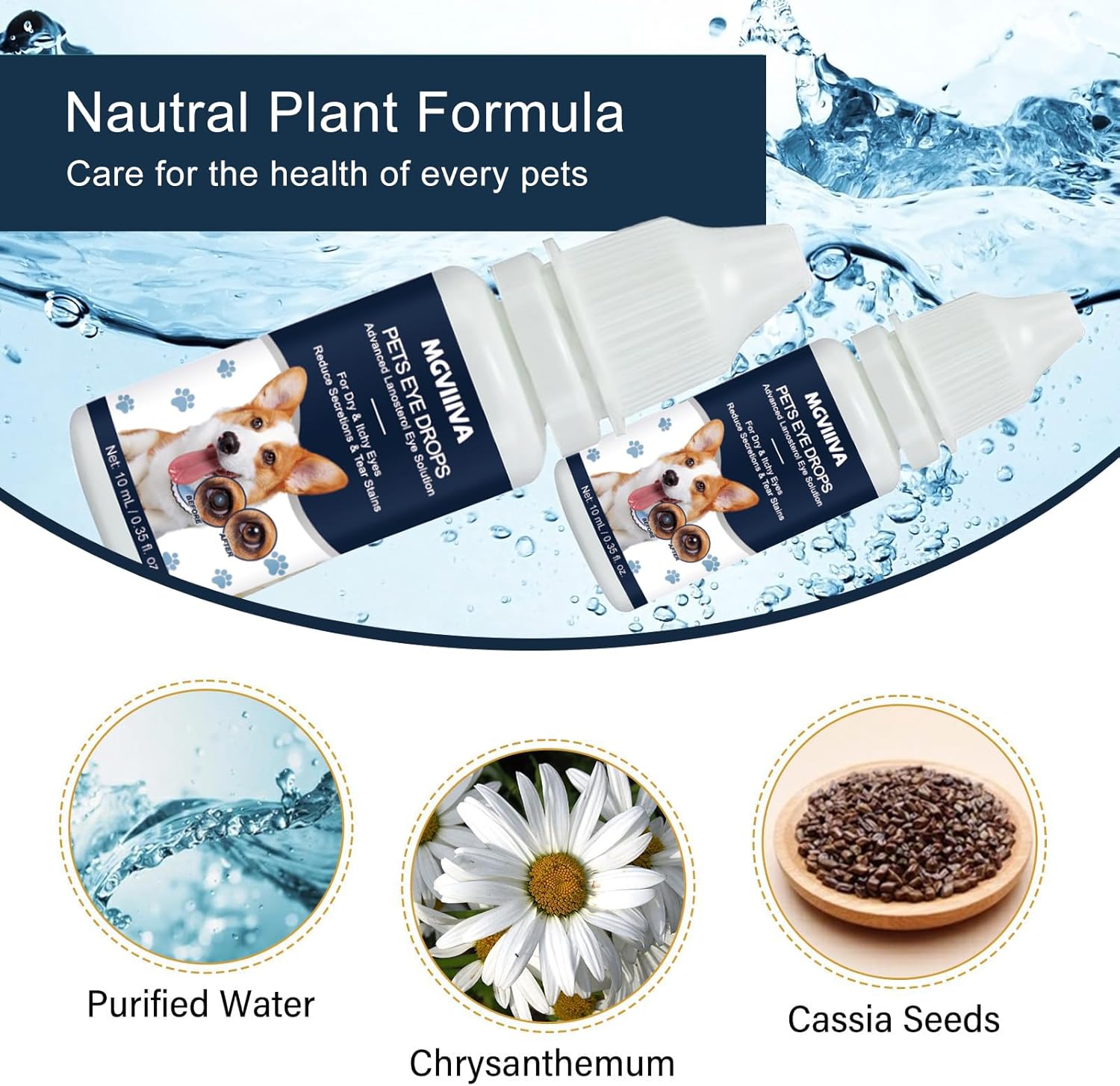 Eye Drops for Dogs: Our dog eye drops can help relief pets eye's discomfort, alleviate symptoms of eye cloudiness, red eyes and blockages, effectively reduce eye problems, improve and protect vision to ensure the health of pets' eyes.: One bottle of cataract eye drops can gently relief pets eye's discomfort, restores the shine of the eye around and effectively reduce eye cataract and infection. It a reliable eye drops for maintaining optimal eye health in your furry friend. Soothes & Refreshes Eyes: Say goodbye to infection, dryness and discomfort caused by dirt, debris and irritants in your prt's eyes to improve and protect vision to ensure the health of pets' eyes. Cataract eye drops for pets provides a long-lasting lubrication and moisturization,as well as long term and sustained love and care. Reliable Formula: Using natural ingredients such as chrysanthemum and cassia seed, the dog eye drops for infection are gentle, non-irritating and perfect for daily protection. Effectively promotes a healthier ocular surface and provides relief from eye infections. Pet friendly ingredients for healthier eyes. Easy Application for Pets: Gently lift the dog's head, take 3-5 drops to the dog's eyes twice a day. After one week, try 1-2 drops. Depending on the improvement to reduce the dosage appropriately. Regularly usage is better to ensure pet's eye health. Veterinarians Approved: This cataract eye drops is a trusted choice of veterinarians for managing eye problems in all small pets -from dogs to rabbits, effectively preventing eye irritation and relieving pink eyes in pets. The 2-bottle pack offers better value with reliable results you can trust. › See more product details