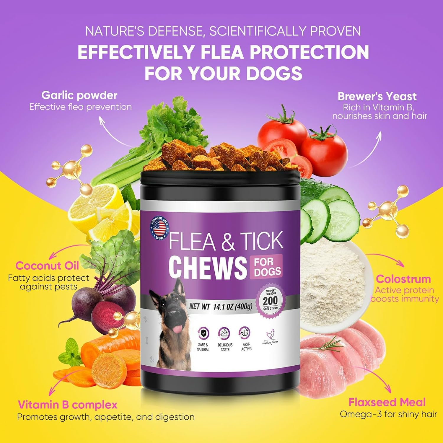 Flea treatment dogs chewable long term protection: Flea and tick for dogs chews comes with 200 per bottle. One bottle of flea and tick chewables for dogs can provide effective and sustained protection for dogs for several months. Reduce the trouble of frequently buying flea and tick chews for dogs, flea treatment dogs chewable to keep your pet in a happy and comfortable environment,while also ensuring that dogs are protected from fleas and ticks for a longer period of time. Flea treatment dogs chewable provides health supports energy:Dog flea and tick treatment chewable can enhance your dog's overall health.Flea and tick chewables for dogs is made with high-quality natural ingredients that are safe and effective for dogs.Flea treatment dogs chewable tablets are formulated with vitamins to promote healthy growth,and flea chews for dogs protect nerves and support your dog's immune system.The natural ingredients in flea treatment dogs chewable work synergistically. Delicious chicken-flavored dog flea chewable: Dogs usually have a natural preference for the taste of chicken to satisfy their taste buds. To make taking dog flea and tick treatment chewable even easier and more enjoyable, flea and tick chewables for dogs adds a chicken flavor. Flea treatment dogs chewable chicken flavor reduces discomfort caused by contact with other products. Delicious flea chews for dogs easily control fleas and ticks, making them easier for dogs to tolerate. Total protection: Flea treatment dogs chewable provides comprehensive protection, and chewable dog flea and tick treatment chewable helps boost daily immunity against seasonal pests like fleas and ticks. Flea and tick chews for dogs fights different types of pests, flea chewables for dogs don't just prevent fleas. Flea and tick chewables for dogs also maintain healthy skin. Dog flea and tick chewable helps strengthen the body's defenses from the inside, making dogs safer in complex environments. Suitable for dogs of different types and ages: Different dogs can also enjoy pest control and health care by eating dog flea and tick treatment chewable. Flea chews for dogs whether they are small, medium or large dogs, whether they are puppies or senior dogs, dogs can safely eat flea treatment dogs chewable. Flea and tick chewables for dogs can effectively relieve itching caused by mosquitoes, fleas, etc. Use chewable flea treatment dogs chewable to make dog feel comfortable and relaxed. › See more product details