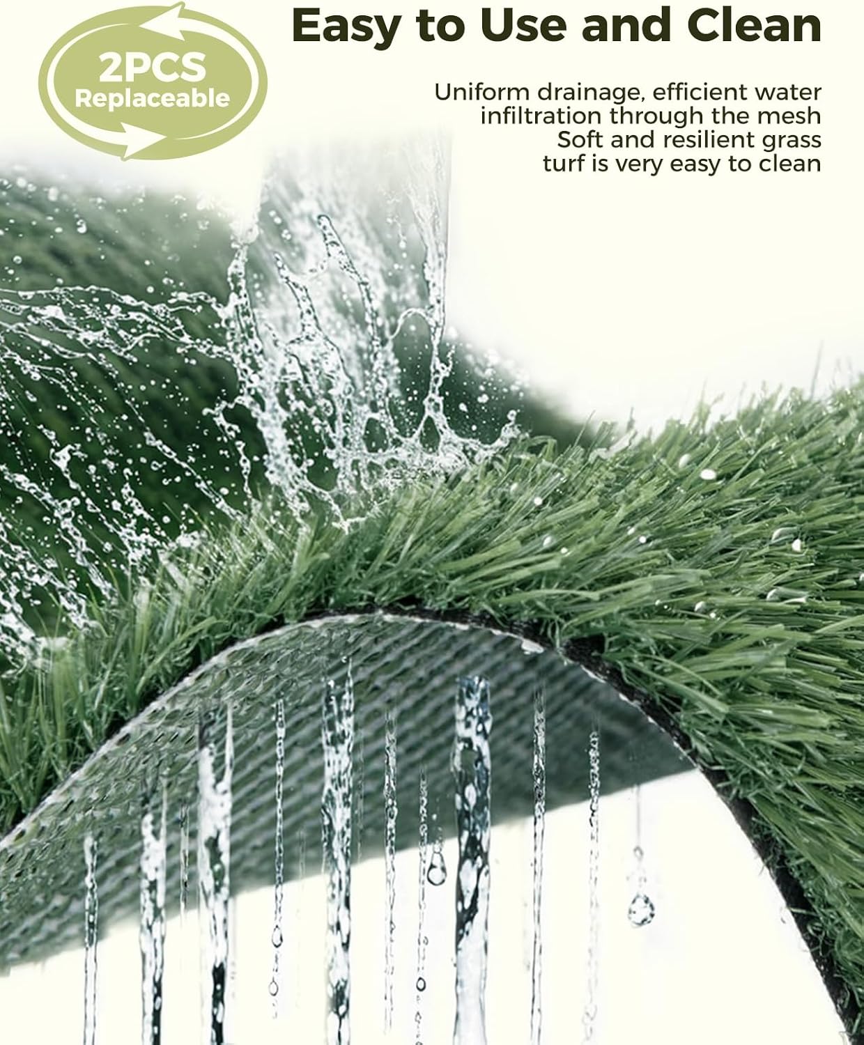 Multi-Layer System for Maximum Cleanliness: Measuring 35" x 23" x 1.5", the dog potty tray is perfect for small to medium size dog. It includes 2 pieces for artificial grass(1 for replacement), a drainage grid, a super-abosrbent pee pad, and a solid collection tray. Realistic Grass Pad: Designed with soft, durable synthetic grass, the dog pee grass closely mimics the feel of real turf, providing your pet with a comfortable and natural potty experience indoors. The high-quality PP material ensures longevity and can withstand everyday use, while the tightly woven grass resists shedding, keeping your pet safe and your home clean. Keep the Paws Dry: The drainage grid efficiently directs urine away from the grass surface, down to the pee pad. The dog pee pad is reusable and washable. Simply rinse under the tap or toss in the washing machine for a quick and easy clean. Its highly absorbent construction effectively locks in moisture and controls odors. Plus, the non-slip backing ensures it stays in place even with an excitable pup. Leak-Proof & Sturdy Tray: Features exceptional leak protection, this tray is built to withstand daily use and prevent any unwanted spills or accidents. Place it anywhere in your home, from apartments to balconies, with confidence and no mess. Low Maintenance Soultion: The perfect solution for busy pet parents, apartment dwellers, potty training, and unpredictable weather! The easy-to-clean design minimizes maintenance, and simplifies the potty training process, providing a consistent and familiar surface for your dog to use › See more product details