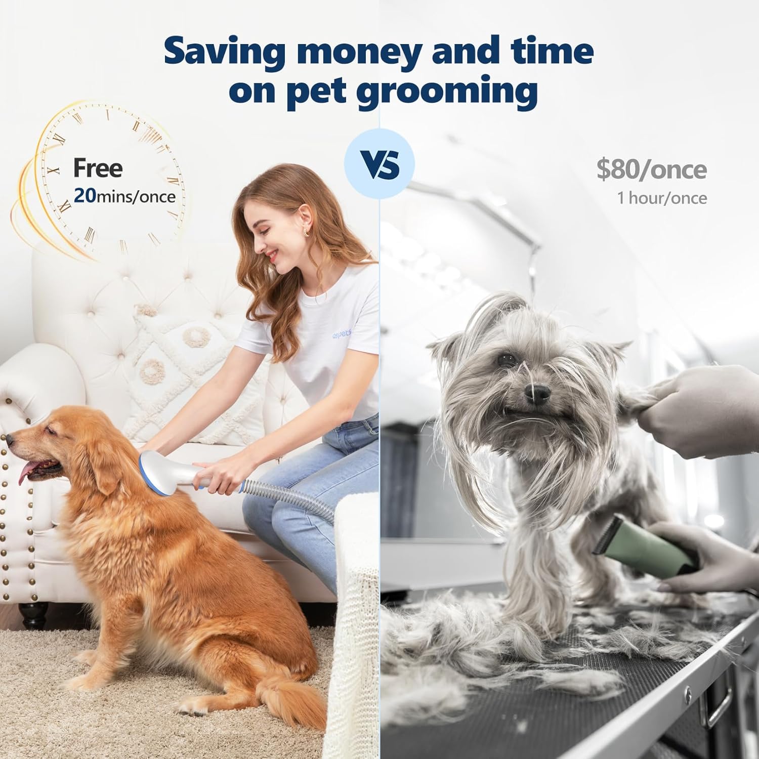 About this item 🐶【Vacuum Suction 99% Pet Hair】Are you still using a traditional pet shaver? Our vacuum pet groomer can save your cleaning time, by directly 99% of the hair adsorption into the vacuum cup, and our 2L large-capacity dust cup can reduce the frequency of your cleaning dust cup. 🐕【Low Noise Design】Our Dog Grooming Kit is specially designed for pets, considering that most pets' hearing is more sensitive than human's, we have made special noise reduction. The lowest noise is only 50 dB, effectively protecting pets' hearing. We recommend using a low suction to make your little pet relax at the beginning and gradually increase until they are fully adapted. 🐱【4 Protective Combs】The electric clippers come with 4 guide combs (3mm/6mm/9mm/12mm), whether your pet is a short-haired cat or long-haired dog, you can find the most suitable hair clipper head for its hair length. The detachable blade and guide combs are easy to replace and clean. 🐈【Powerful& Adjustable Suction】The cat grooming kit has 16 suction levels to choose from,the maximum suction power can reach 13.4Kpa,easily remove hair from pet scattered throughout the home, and give you a clean and tidy room. 👩💻【After-sales Service】Our pet grooming kits can be used in combination or individually. If you encounter any problems during use, you are welcome to contact us at any time and we will try our best to help you solve the problem. › See more product details