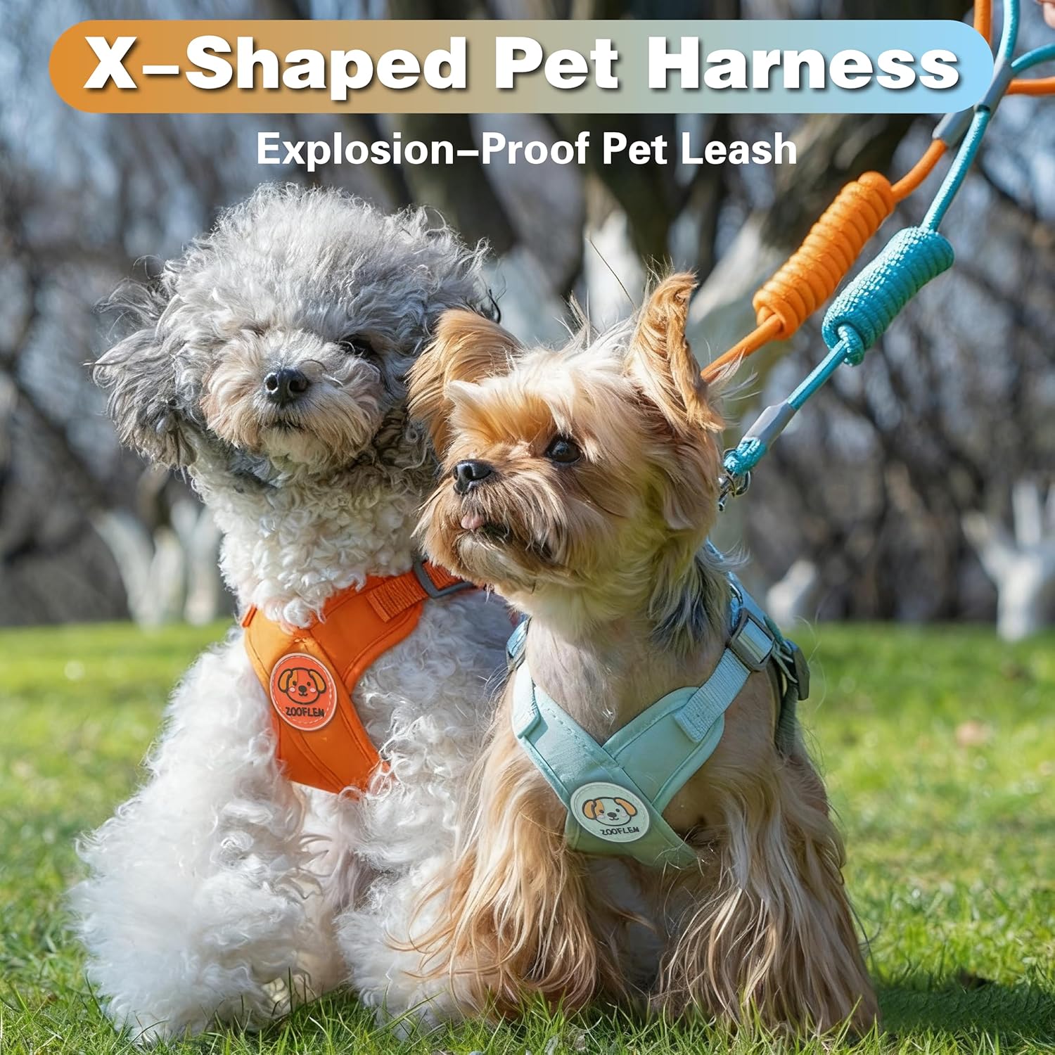 About this item 【Harness & Belt Set】 – Get both an ultra-soft harness and matching harness in one convenient package. Save time and money while ensuring your furry friend has a coordinated look. 【Breathable air mesh design】 – made of durable air mesh for maximum comfort, lightness and quick-drying performance. Perfect for active dogs and warm weather. 【Safe and easy to use】 – Features double D-rings and a secure buckle lock to prevent accidental escape. The walk-in design allows for quick and hassle-free wear. 【No tension, no suffocation】 – Features a unique no-choking X-shaped design that is padded and breathable to reduce neck pressure. Ideal for dogs prone to pulling or respiratory issues. 【Stylish and Practical】 – The vibrant colors and cute cartoon dog motifs make this carrier not only practical but also a stylish accessory for your pet. Includes a tangle-free 5-foot strap and a heavy-duty swivel clip. › See more product details