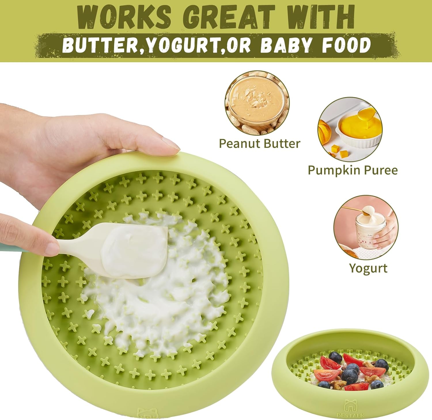 About this item PERFECT FOR KEEPING DOGS BUSY - Veterinarians and behaviorists recommend mental enrichment for anxious and bored dogs. our dog enrichment licking bowl is easy, fun, anxiety relief & distraction to match your dog's activity needs, helps prevent bloat and other digestive issues. FOOD GRADE SILICONE INTERACTIVE DESIGN - Our Dog treat dispenser lick bowl is made with 100% BPA-free, food-grade silicone that's completely safe for all size dogs. Dishwasher safe for easily cleaning. ANTI-SLIP & NO MESS DESIGN - The lick bowl's edge design prevents food, treats, and drips from sliding down walls or into the bath. The suction cups design at bottom ensure maximum adhesion on any flat surface, suitable for both horizontal and vertical use. FREEZE TREATS FOR LONGER LASTING FUN - Place your homemade dog snacks into the lick bowl and put them in the freezer to prolong playtime. Ideal for a variety of treats, including runny treats, bone broth, yogurt, wet food, raw food, doggie ice cream, and more. SUPPORTS DENTAL HEALTH - The textured surface of lick bowl for dogs promotes licking, which stimulates saliva production, a key factor in maintaining dental health. This design efficiently removes food particles that contribute to bad breath, promotes overall oral health, healthier gums and teeth. › See more product details