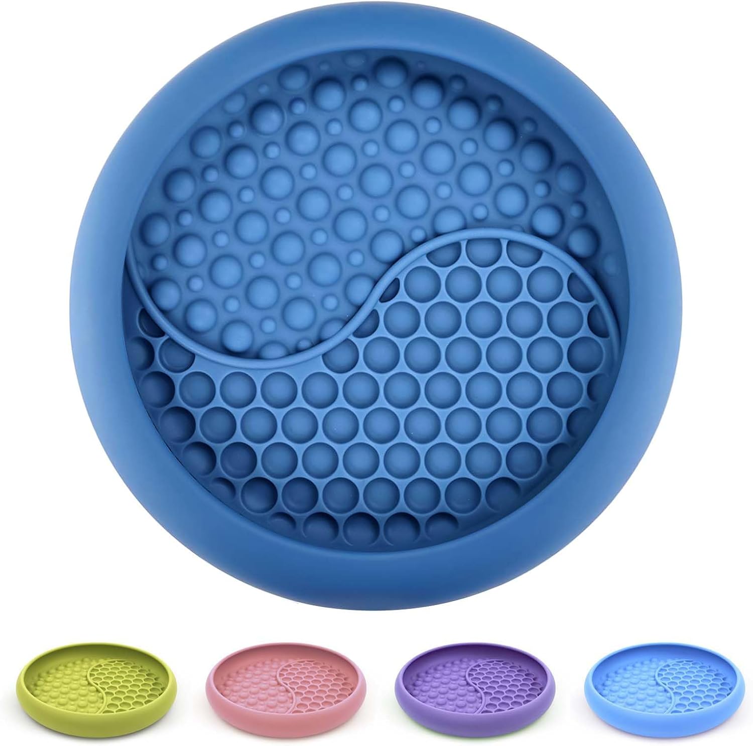 About this item Simple and Practical Design: It is bowl-shaped, with reasonable depth, flat bottom to reach, licking pad design, food-grade silicone material, sturdy and durable. Good depth of the grooves to hold in little treats. The curved edge design of the licking bowl reduces food drops and keeps the house clean. Suitable for Summer Frozen Bowls: You can put kibble in it as well as soft food. It's great for adding dog safe peanut butter or other lickable treats. Mix pumpkin, yogurt, peanut butter, banana and blueberries together and coat the bottle of the bowl and freeze it. Relieve Anxiety & Help with Dental Health: This dog lick bowl can be used as a distraction for a jumpy dog, shift his focus to a fun, long-lasting treat. The raised bumps in the bowl help with the dog's salivation and that in turn serves to help with gum and tooth health. It also helps digestion and relieves anxiety. Great for snack time or bath time. Anti-Slip Licking Bowl: It has really strong suction and will stick to almost any clean and flat surface securely, suitable for horizontal and vertical use. The suction force of several small suction cups at the bottom is more effective than that of large suction cups; even after freezing, the suction cups can still stick together. Easy to Clean: It washes easily and still looks great after dishwashing. The groove spacing is larger, which makes cleaning easier. Cleaning is a breeze add to your sink wash, wash like any other item, pop into dishwasher. › See more product details