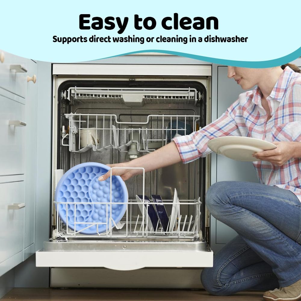 Features:1. Premium Material: The dog licking mat is made of high quality silicone, resistant to high and low temperatures, can withstand -40 to 250 ℃, soft texture does not hurt the pet's mouth, can be used for a long time.2. Partition Design: The center of the bowl is separated by a curved baffle, the left and right sides of the bowl can be used to place food rations separately, the left area is equipped with a concave dot texture, and the right side is a raised dot, so that pets can naturally massage their tongues and gums when they are eating.3. Silicone Suction Cups: The bottom of the bowl is equipped with multiple silicone suction cups, which are firmly attached to the table or floor to avoid spills when your pet pushes the bowl while eating.4. Easy to Maintain: The overall structure of the bowl is simple without dead corners, the surface is smooth and easy to dry, and it is easy to maintain by washing it directly in water or putting it into the dishwasher.5. Widely Used: This pet slow feeder can be used in the oven, microwave, dishwasher and refrigerator, meets the needs of medium and small cats and dogs, the bowl shape fits the eating habit.Specification:Material: Silicone Weight: 0.157kgSize: 15*15*2.6cm/5.9*5.9*1in Color: Blue, Green, Orange, Pink Purple, Olive Green Packing List:1 * Dog Lick Bowl Notes:1. Due to the difference between different monitors, the picture may not reflect the actual color of the item. We guarantee the mode is the same as shown in the pictures.2. Please allow 1-2cm slight dimension difference due to different manual measurement.