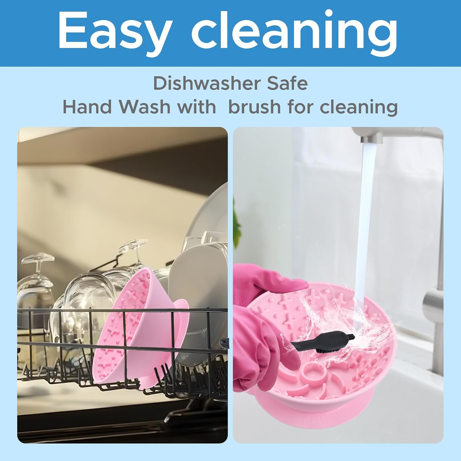 About this item Anxiety Relief for Pets: This dog licking mat promotes calming licking behavior to reduce anxiety, stress, and separation anxiety. It offers a soothing experience, promoting relaxation and comfort during stressful moments. Perfect for anxious dogs Frozen Treat Dispenser: Turn your dog’s favorite food into a frozen treat with this dog treat dispenser. Simply apply food to the silicone surface, freeze, and enjoy hours of entertainment. This dog slow feeder helps keep dogs engaged and promotes healthier eating Supports Oral Health: The textured surface of this dog licking mat gently massages gums and helps clean teeth. It supports oral hygiene, reduces bad breath, and promotes overall dental health, making it both fun and beneficial for your dog’s health Non-Slip Base: Featuring a strong anti-slip base, this dog slow feeder stays in place on any surface like tile or wood. No more worries about spills or sliding, providing a clean and stress-free mealtime experience with the lick mat for dogs Food-Grade, Non-Toxic & Durable: Made from high-quality food-grade silicone, this dog licking mat is safe, non-toxic, and durable. It resists biting and is designed for long-term use, offering a hygienic, practical feeding solution for your dog. Ideal for daily use › See more product details