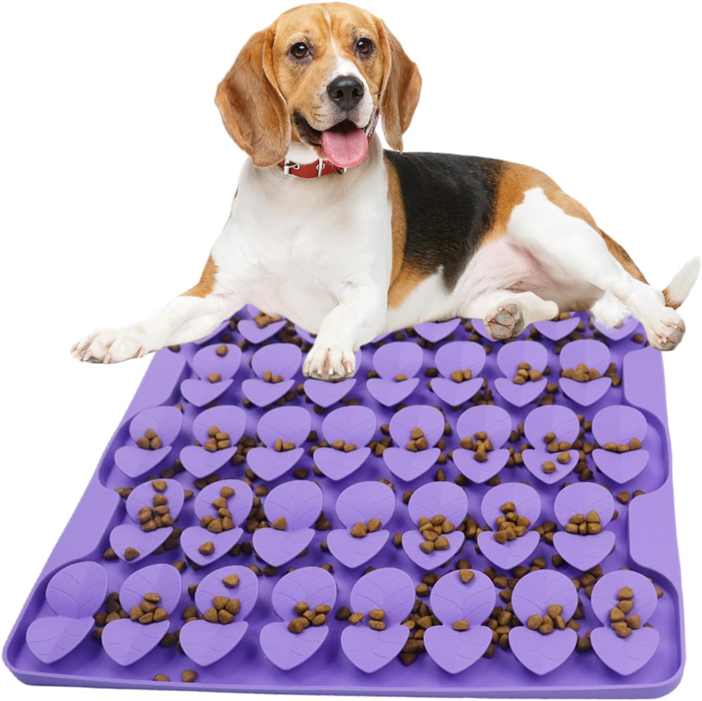 About this item What’s the Benefit will the Snuffle Mat Bring to Your Dog: The durable snuffle mat for large dogs can slow down the speed of eating time.Increasing your dog's eating time can allow your dog to consume energy, reduce anxiety.The leaf design of the silicone snuffle mat,simulating the grass environment, can exercise your pet's smell training and foraging ability. Make your pet more health and happy. Work with Dry Food and Wet Food : The silicone snuffle mat for dogs small can be used for a lot kind of food,like dog food,peanut butter,mike,yogurt,meat,treat etc. No matter dry food or wet food,use it according to your pet's needs.Simple use. Food Grade Silicone Material for Your Furry Friend : Silicone lick mat for dogs is made from BPA free, food grade silicone,soft and friendly, make sure safety for your pets, we also care of your furry friends. 132 Strong Suction Cups: This dog feeding mat design with 132 super suctions cups that you could stick it on any smooth surface, no need to worry your dog will flip up or slid the food anymore. Easy to Clean : The sniff mat for large dogs is easy to clean as the silicone material,can be washed by hand or dishwasher safe. It will be dry faster than cloth snuffle mat. › See more product details