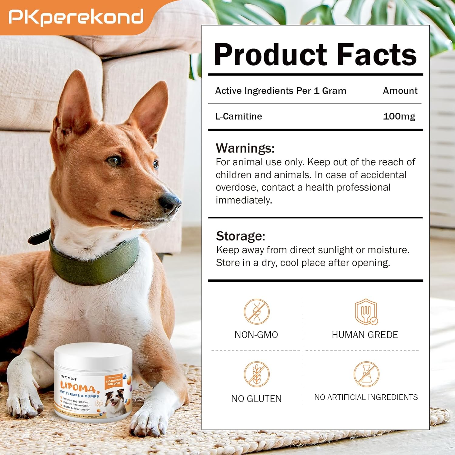 Support Your Dog's Health NaturallyL-Carnitine for dogs is a targeted supplement that promotes healthy fat metabolism, maintains a healthy weight, and supports strong, lean muscles. It's a smart choice for dogs dealing with excess weight, low energy, or fatty lumps under the skin.Helps Manage Lipomas and Fatty Lumps & BumpsAlthough lipomas are often harmless, they can grow large enough to impact your dog's comfort and movement. This dog lipoma supplement helps limit the development of fatty masses by improving the body's fat-burning efficiency and encouraging balanced fat distribution. It may reduce the pressure caused by existing lumps while helping prevent new ones from forming.Boosts Energy and Muscle ToneBy supporting lean muscle maintenance and overall energy production, L-Carnitine helps your dog stay active, agile, and full of life. It's especially helpful for senior dogs or breeds prone to weight gain and fatty growths.A Healthier, Happier DogGive your dog a supplement that supports long-term wellness, from weight control to improved mobility and vitality. Every dog deserves to feel their best—inside and out.
