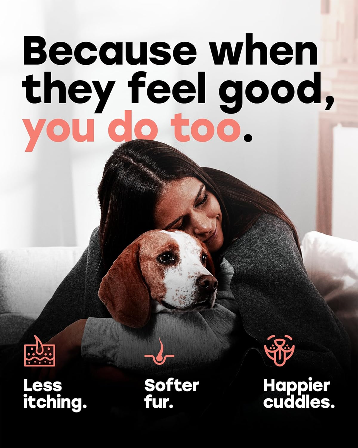 Support your dog’s everyday vitality, skin comfort, and coat shine with the Dog Multivitamin Beef + Omega 3 Skin & Coat Bundle. This two‑jar system pairs a complete chewable multivitamin in a savory beef flavor with a PhD‑endorsed Omega‑3/6 salmon oil chew containing Biotin, Zinc, and Vitamin E. The result is daily, head‑to‑tail care designed to:Nourish skin and reduce dryness and itchiness while minimizing shedding through essential fatty acids and targeted botanicals all in one pet vitamins.Fill common nutritional gaps with a full spectrum of vitamins and minerals to support immune function, steady energy, and overall wellbeing.Support joint resilience and healthy movement via nutrients that complement daily activity.Promote digestive comfort and nutrient uptake so active ingredients are better absorbed and utilized.Each jar is formulated for versatility and palatability, making this bundle suitable for puppies, adults, and senior dogs when used according to the labeled weight‑based dosing. Our packaging preserves freshness and provides clear days‑per‑jar math to simplify reorder planning.Choose this bundle to replace multiple single‑purpose products with one coordinated daily regimen that prioritizes ingredient transparency, caregiver convenience, and visible skin and coat improvement.Use & DosingFollow weight‑based dosing printed on each jar. Give chews directly or crumble over food. When introducing new supplements, start at the lower end of dosing to confirm tolerance and then follow label guidance. Consult your veterinarian for pets with specific medical conditions or ongoing prescription treatments.What’s Included1 jar — Chewable Multivitamin Beef Chews (count per jar on label)1 jar — Omega‑3/6 Salmon Oil Skin & Coat Chews with Biotin, Zinc & Vitamin E (140 chews)Both jars of dog vitamins include clear per‑serving ingredient panels, dosing guidance, and days‑per‑jar calculations