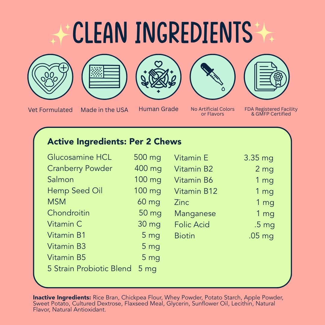 Who says Happy Hour is just for humans? This all in one daily cocktail of essential vitamins and minerals is sure to keep your dog feeling good, looking great, and wagging for more. Start your pup's day with a boost of wellness. Enjoy improvements to your dog's: ✅ Gut health & Digestion ✅ Skin and Coat ✅ Immune Function ✅ Joint Support ✅ Antioxidant ✅ Energy & Vitality ✅ Heart Health ✅ Urinary Support