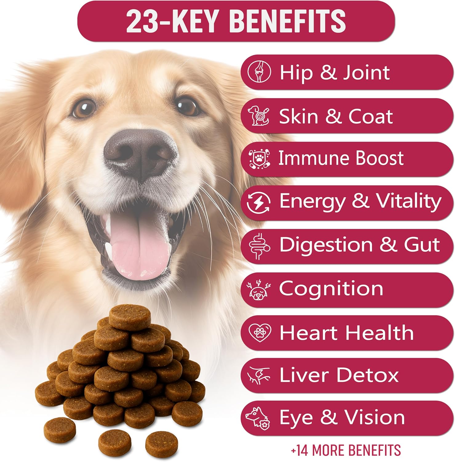 - Product Benefits: Hip & Joint, Immune Health, Skin & Coat, Digestive support