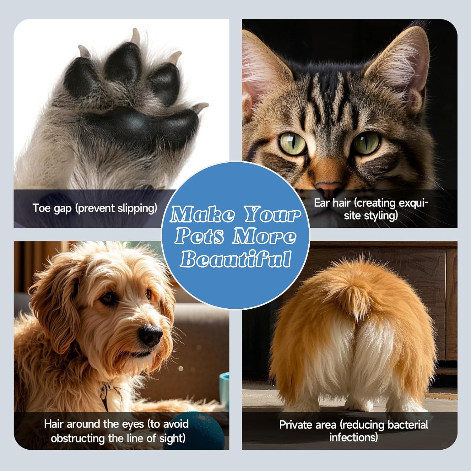 About this item 【Micro Precision Cordless Paw Trimmer For Dogs and Cats】Designed with safety function to prevent skin injuries, keeping your pets comfortable during grooming. High performance trimmer for trimming small areas such as pets' ears, eyes, paws, feet, hips, providing a precise grooming experience. It is ideal for both dogs and cats, ensuring a neat and tidy appearance. 【Low Noise Dogs and Cats Paw Trimmer】This pet paw trimmer is made of a high-speed and quiet motor. Its low noise operation (35dB) minimizes stress and anxiety for your pet. Designed with your pet's comfort in mind, our trimmer operates quietly with minimal vibration. It minimizes stress, making the grooming experience more enjoyable for both you and your pet. It makes your pets feel easy and not afraid of cutting locality hair anymore. 【Dogs Cats Paw Trimmer with LED Light and Smart Display】New upgrade electric dog trimmer for paws are equipped with LED light for easy trimming in low light environments, ensuring safe and accurate. LED screen clearly shows three key status - Running Status, Full Charged, and Charging Reminder. The one-button operation makes it simple and intuitive to use, enhancing your pets grooming experience. This pets paw trimmer is rechargeable and cordless, fully waterproof, but we recommend not to immerse the paw primmer in water for a long time. 【Multifunctional Use for Dogs Cats Grooming Kit】This paw trimmer for dogs and cats are your all-in-one solution for grooming needs. Rounded blade edges ensure a smooth trimming hair without scratching, allowing you to trim your pet's fur, paws, face, eyes, ears, rump, body hair, keeping them looking beautiful. In addition to the pet paw trimmer machine, the package also includes 1 USB charging cable, 1 cleaning brush, and 1 bottle of maintenance oil. Easy maintenance after use of this pets trimmer. 【Hygienic and Stress-Free Grooming Easy to Carry】This dogs cats grooming clipper is very easy to cut around pets paws hair. If you are a beginner then will be perfect for you. Easy to operate. Press button to start trimming. Which can flexibly and accurately trim the hair around small areas. Paw trimmer is small size, easy to carry for outdoor use, also easy to store. With a full body waterproof design, this paws trimmer is easy to clean and maintain, ensuring optimal hygiene. 【We Have Excellent After-Sales Service】We have reliable after-sales service. If you find this dogs cats paw trimmer does not work or you feel dissatisfied when using it, please contact us and our after-sales team will reply to you within 24 hours. The after-sales team will give you a satisfactory reply. Our service tenet - Customer Satisfaction is Our Pursuit, please believe in our service! In the meantime, we wish you a happy shopping! › See more product details