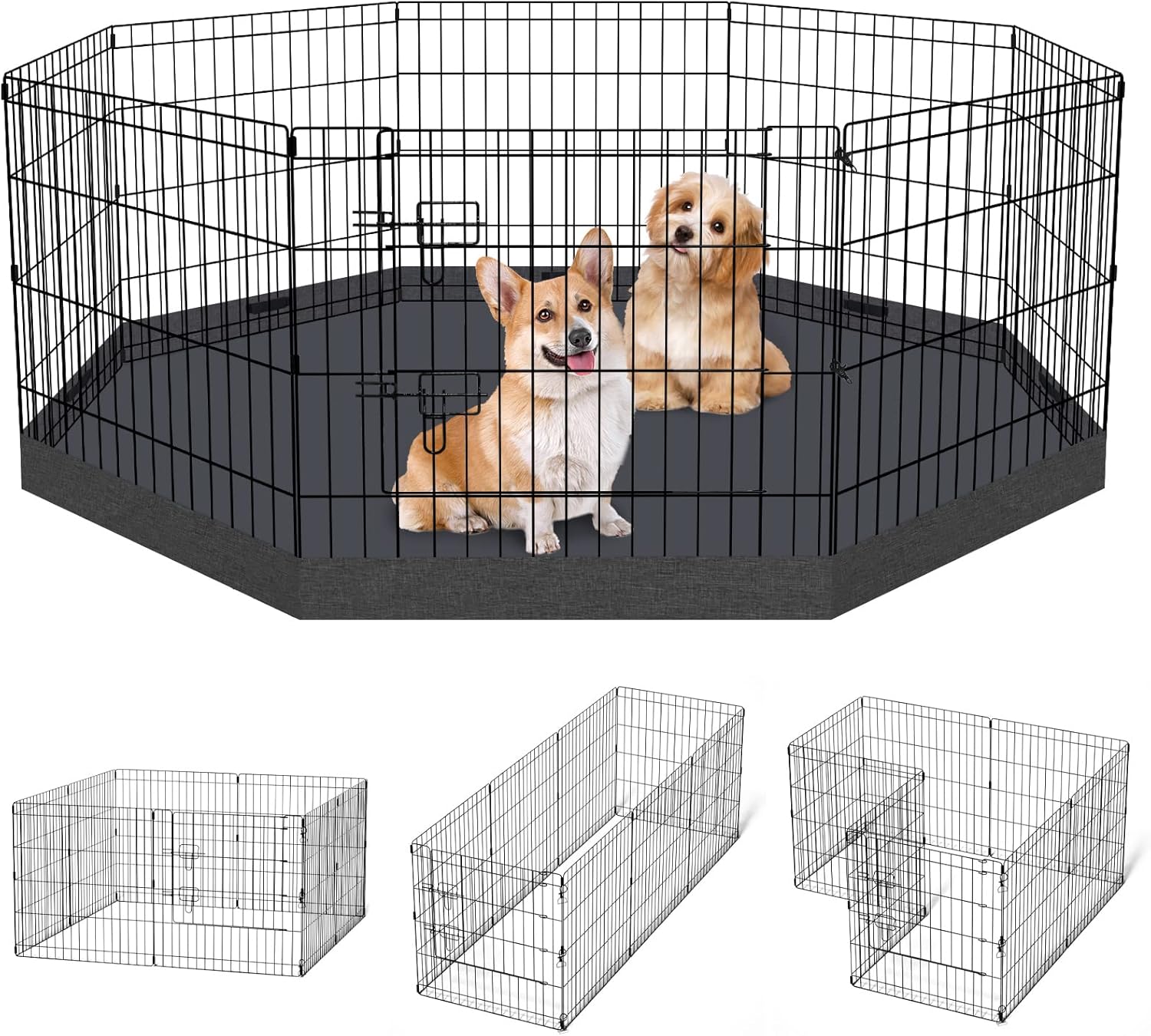 About this item High Quality of Durable Oxford Fabric:The pet playpen bottom pad was made of thick oxford, which is durable and with high strength. Foldable Pet Playpen:Exercise dog pens have 8 connected panels easy to set up puppy pet folding playpen and take it down,folds flat for easy storage and transport. No need tools for installing(each panel 24H x 24W x 0.1L Inches) . Great for Indoor & Outdoor Use:The rust-preventive and water-proof,protects the dog playpen from the elements & included ground stakes fix to ground not to move,allow to configure into multiple shapes, great for indoor or outdoor use. Keep Pet Secure: giving pets a large and safe space; used as outdoor animal enclosure or play fence. Easy to clean & Washable & Reusable:Multiple Uses: playpen mat is perfectly used for the pin, cage. The waterproof pet pad can be used as feed pads or under the water bowl. waterproof cover fits the machine and are handwash. › See more product details