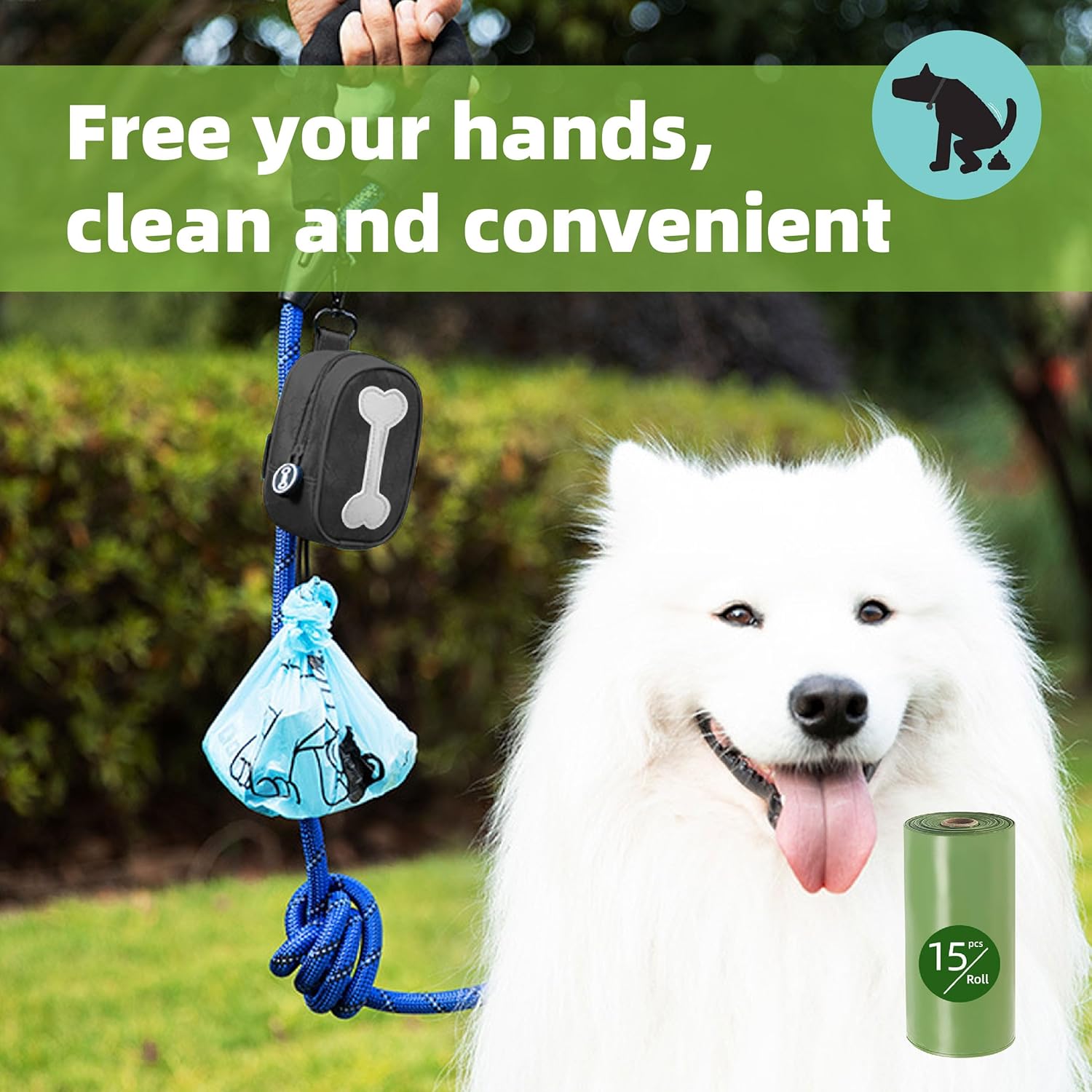 Never leave home without the ultimate dog poop bag carrier. This multi-purpose storage solution combines convenience and durability in one sleek design. The IIUIKOO Dog Poop Bag Holder is your perfect partner for hassle-free cleanups. It easily attaches to any retractable dog leash, collar, or bag, making it an ideal hands-free companion for all your walks. Our doggie poop bags holder features a sturdy metal clip and a reliable Velcro strap to ensure it stays securely in place. Crafted from soft yet tough waterproof fabric, this durable dispenser is built to withstand daily use and the elements. This product is more than just a poop bag holder. It is a versatile dog treat and poop bag holder in one, with enough space to store your essentials. The wide opening allows for easy and clean waste bag removal. Compatible with most standard roll bags, this hands-free dog poop bag holder is the essential dog leash accessory for every pet owner. Upgrade your pet waste bag dispenser today and enjoy a more organized and convenient walk with your furry friend.
