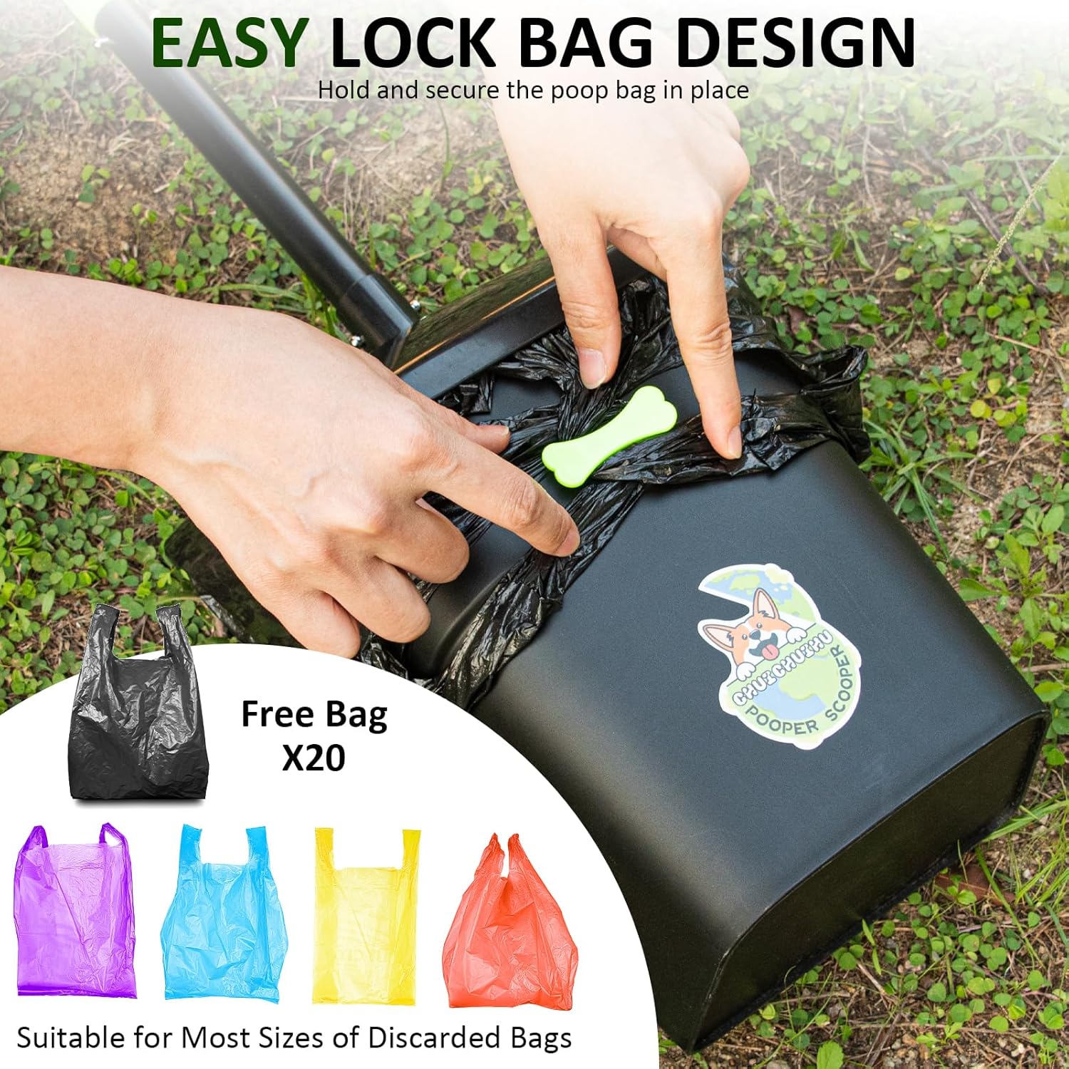 No need to bend over: The stainless steel rod is designed with snaps for easy installation, and the swivel box, rake, and shovel are ergonomically designed and are 38 inches, 37.4 inches, and 33.4 inches in length, making it easy to clean your dog's feces without bending over. Odorless and easy to clean: The rotating barrel is equipped with a lid that seals odors and keeps out wind and rain, and the poles, rakes and shovels are treated with a non-stick coating and can be washed directly with water. Suitable for all kinds of grounds: suitable for use on grass, concrete floors, gravel, and soil. It's idea for picking up pet waste, leaves, and garden debris, offering quick cleanup whether at home or while out on walks, catering to waste from large, medium, small dog breeds. Convenient Poop Bags: The Dog Poop Spoon Metal Set also offers 20 garbage bags, and to prevent the garbage bags from moving or falling, the locking device in front of the rotating bucket can secure the handles at both ends of the garbage bags. Easy to store: The handle has holes to hang on the wall or floor, and the handle can also be detached to store to save space, giving you a variety of storage options. › See more product details
