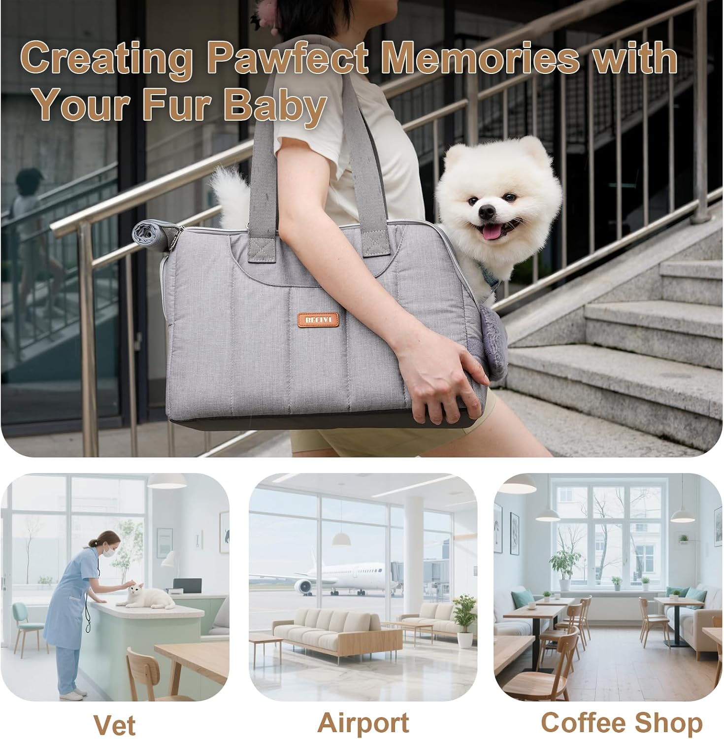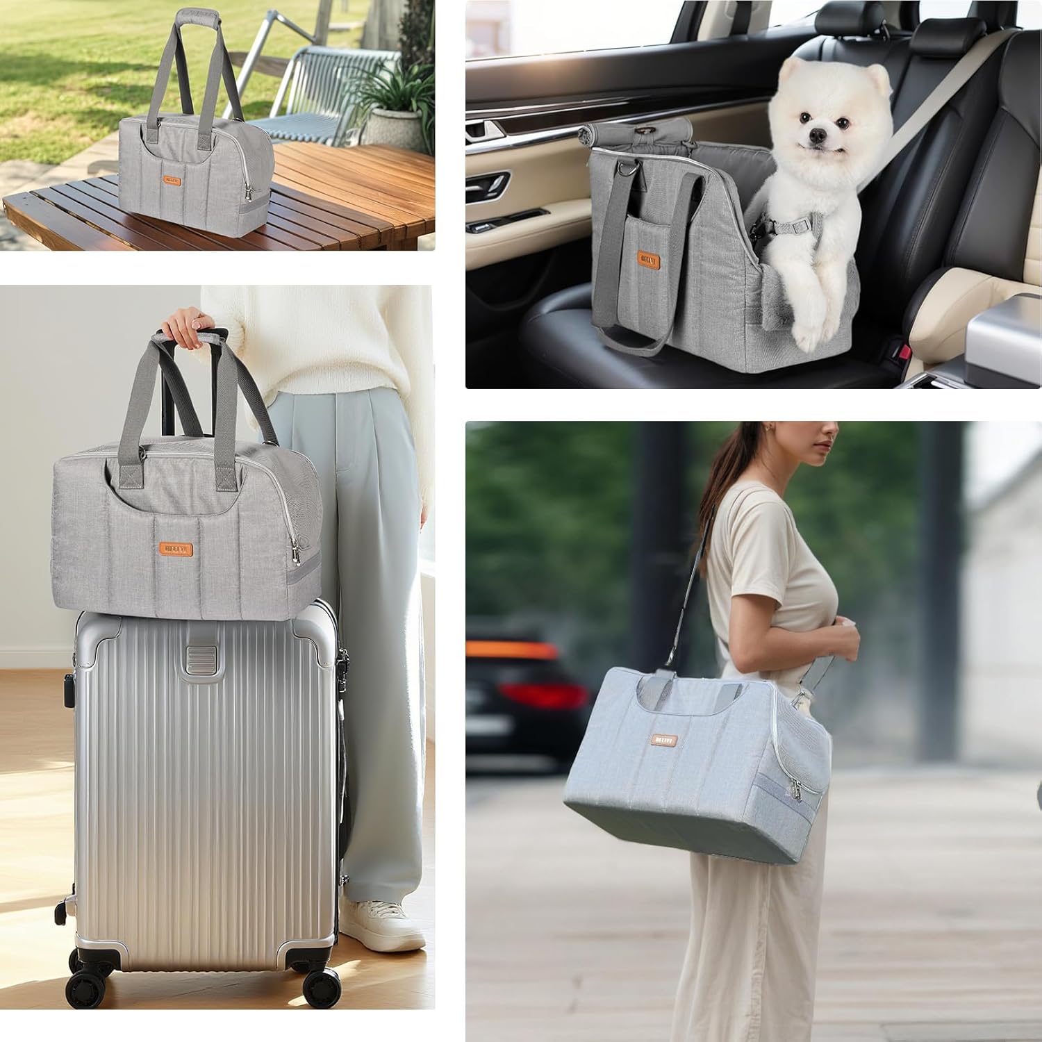 About this item FITS MOST AIRLINE SEAT & SECURE: The package contains a dog/cat purse bag, a front soft pillow, a hard base insert and a poly-cotton crossbody strap. The dog carrier for small dogs has a wider adjustable safe belt and internal escape-proof zipper keeping your fur baby safe.Soft side design prevents cabin rejection (fits under 90% airline seats). ANTI-COLLAPSE SUPPORT & LUXURY COMFORT: The Becivi Pet Purse Carrier combines luxury and functionality. Its plush front pillow offers cozy comfort, while large organizational pockets keep essentials neatly stored. The carrier body features 15mm-thick pearl cotton padding and a anti-collapse hard base insert lined with dual 3mm pearl cotton layers—ensuring optimal support, safety, and comfort for your cherished companion. ANTI-SLIP BOTTOM & EASY TO CLEAN: The small dog bag’s supportive hard-board base padded with thick pearl cotton, wrapped in a premium dual-fabric cover (plush faux fur on top, durable fabric underneath) which easily removable via zipper for machine washing,while the non-slip, water-resistant bottom wipes clean. BREATHABLE,LIGHTWEIGHT& PORTABLE DESIGN: This dog carrier is designed to be incredibly lightweight,portable and the sturdy airflow front-back mesh panels allows pets to breathe freely. Dog bag carrier compact design makes it easy to carry, fitting comfortably under your arm or in your hand – ideal for quick vet visits or leisurely park strolls. URBAN-READY ELEGANCE: Effortlessly transition from brunch to boutique with this design-forward tiny pet carrier bag. Perfect for urban strolls, cafe lounging, or luxury shopping sprees—its contemporary aesthetic complements any style, gracefully carried by all genders to elevate every outing with your companion. › See more product details