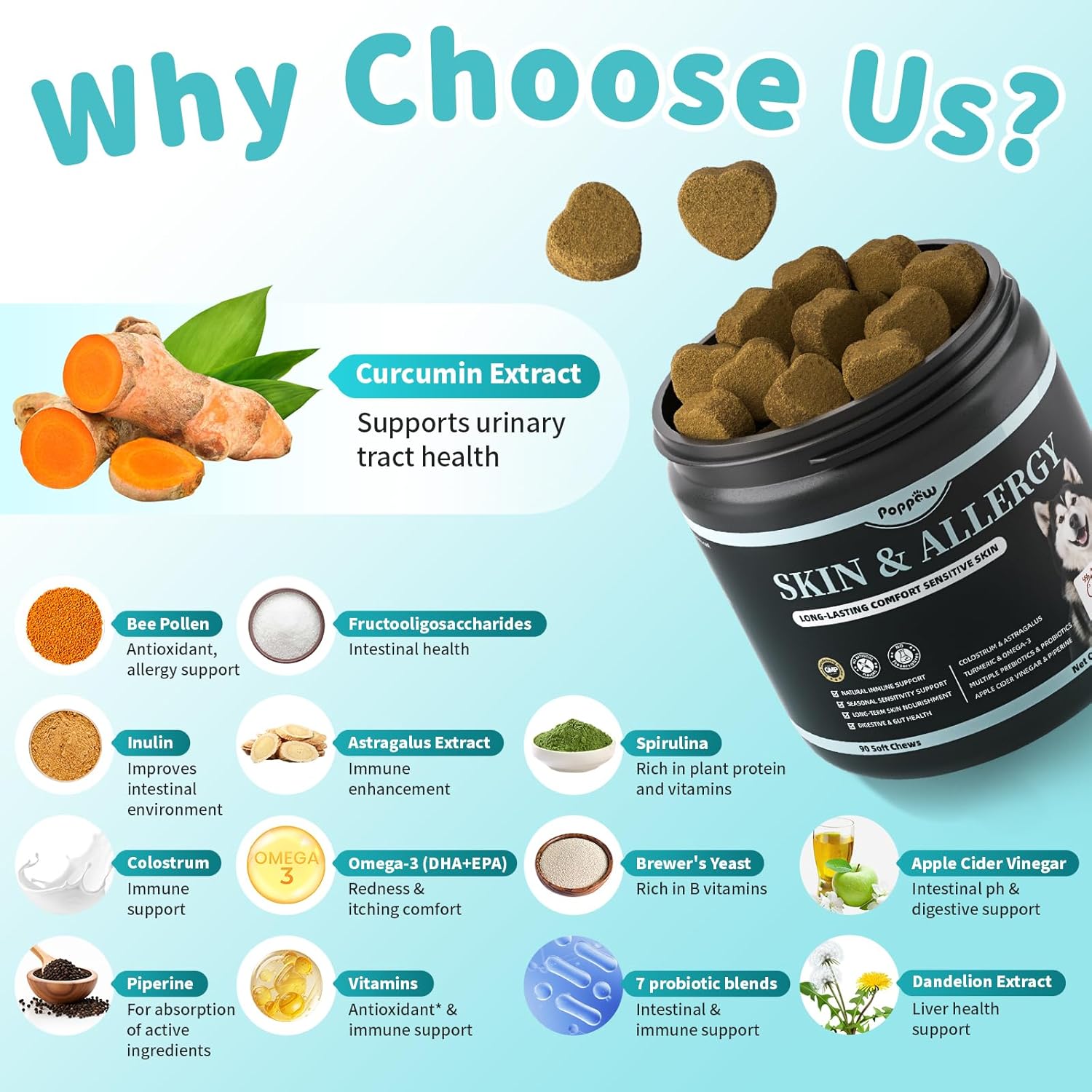 - Included Components: Skin & Allergy Support Chews