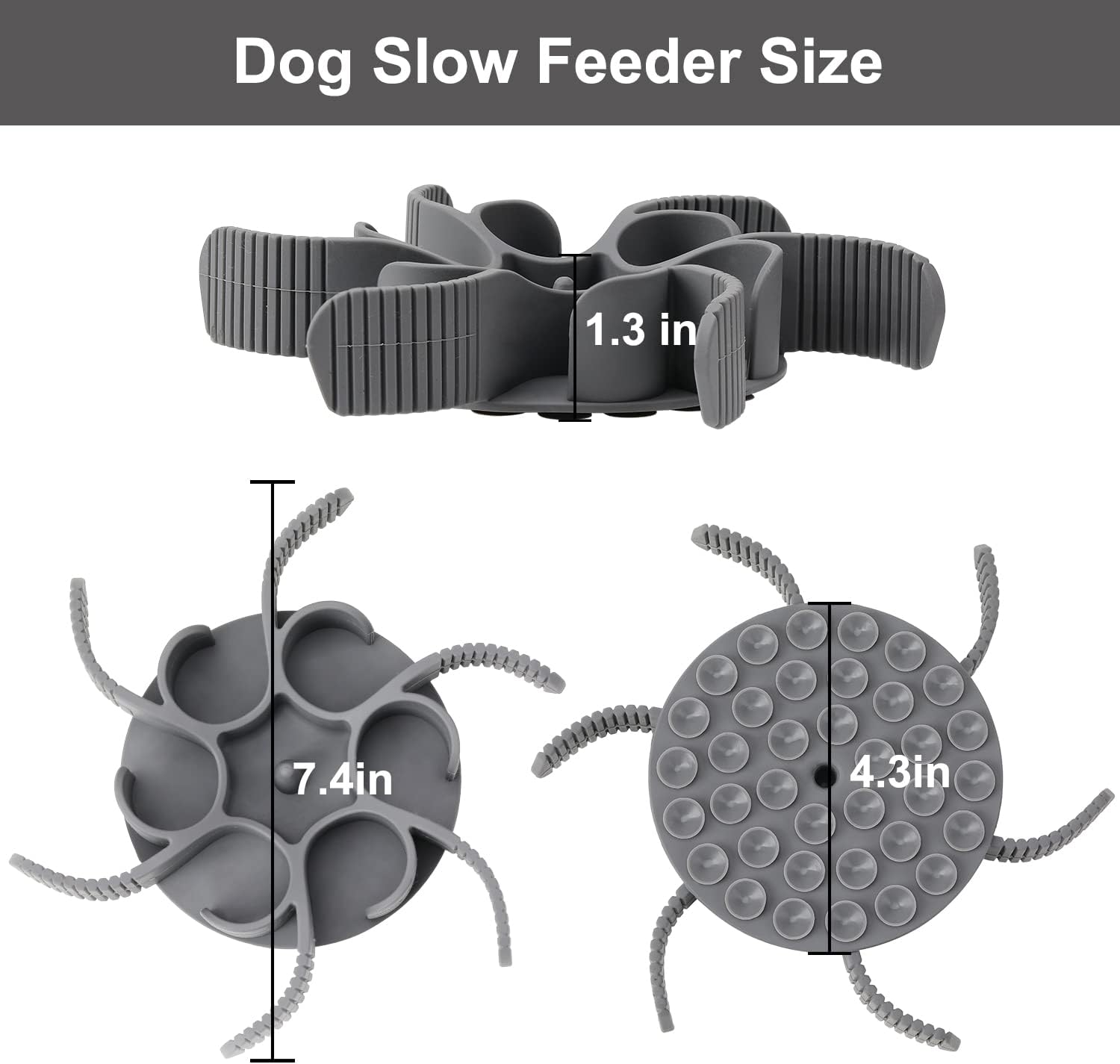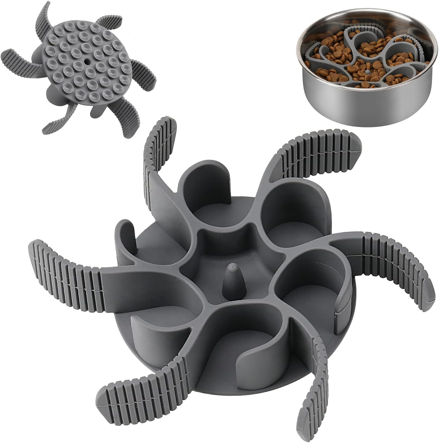 About this item Slow Down Eating: If you want to slow down your dog's eating speed and let your dog avoid the problems of digestion, choking, and vomiting after eating, you need this slow feeder insert which can perfectly solve these problems.Using this dog bowl slow feeder can increase your dog's feeding time and ensure your dog has more time to digest food. 36 Octopus Suction Cup: Dog slow feeder has 36 octopus suction cups, can firmly work on most of the material dog bowls bottom such as glass, plastic, ceramic, stainless steel. Strong suction can keeps your dog from pulling out the slow feeder insert. You can easily install this slow feeder insert in your dog bowls without adding water. One Insert for Most of Size Dogs: Spiral slow feeder insert made of flexible silicone so can fit with most size dog bowls, perfect to install in the range from 4 cups up to 11 cups dog bowls. And the dog slows feeder has a precise cutting line, you can just cut off the excess part through the precise line if you think the dog slow feeder is too big. The adjustable slow feeder can satisfy most size dogs' slow feeding needs. Easy to Clean and Remove: Our dog bowl slow feeder have 6 tapered handle, you can easily remove the slow feeder insert by simply pulling the tapered handle after your dog has eaten. The slow dog food feeder is dishwasher safe, you can rinse to clean this slow feeder or just put it in your dishwasher after use. High-Quality Material: Our slow feeder inserts are made of high-quality food-grade silicone, suitable for dry and wet food, soft, flexible and safe. You can use this dog slow feeder for your dog without worry, it will not hurt your dog’s nose and mouth during your dog eating. But prevent pet from chewing it, the slow feeder is not a chew toy. › See more product details