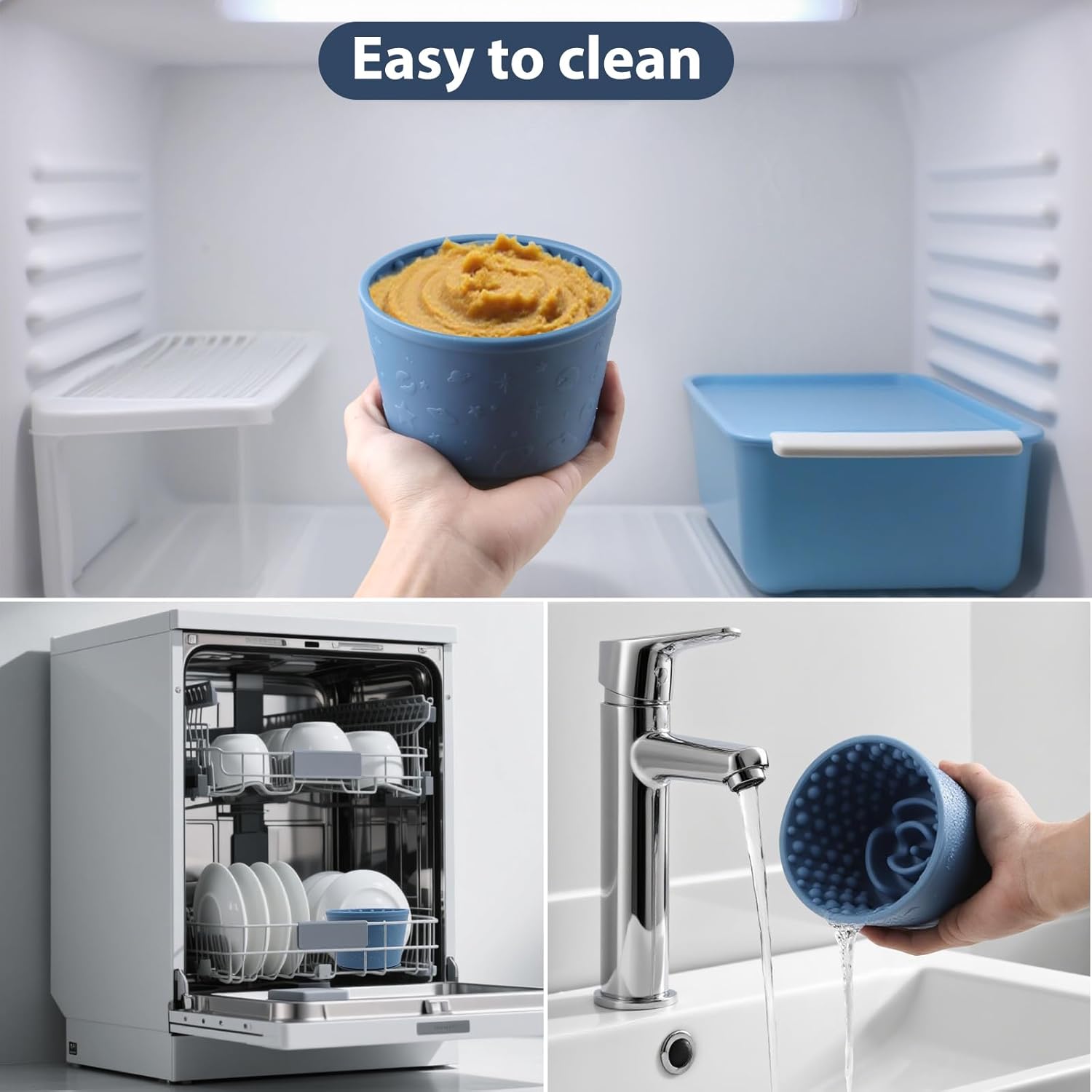 About this item Promote Calm & Focused Behavior: Designed to reduce anxiety and boredom, this dog slow feeder bowl helps your dog stay calm during grooming, bathing, or alone time. Perfect for anxious eaters or dogs that need a distraction Food Grade Silicone Material: Made from premium food-grade silicone, and gentle on your dog’s tongue — ensuring a safe and enjoyable feeding experience every time Anti-Choking & Healthy Eating Design: Encourages slower feeding habits and prevents gulping or choking. The textured licking surface stimulates saliva production, improving digestion and oral health for dogs of all sizes Non-Slip & Easy to Clean: Features a strong non-slip base to keep the bowl steady during use. The flexible silicone design makes it easy to rinse, hand wash, or place in the dishwasher for quick cleanup Perfect for All Dog Breeds & Treats: Ideal for peanut butter, yogurt, soft snacks, or frozen treats. Whether you have a small puppy or a large breed, this slow feeder dog bowls provides fun, enrichment, and stress relief for every mealtime › See more product details