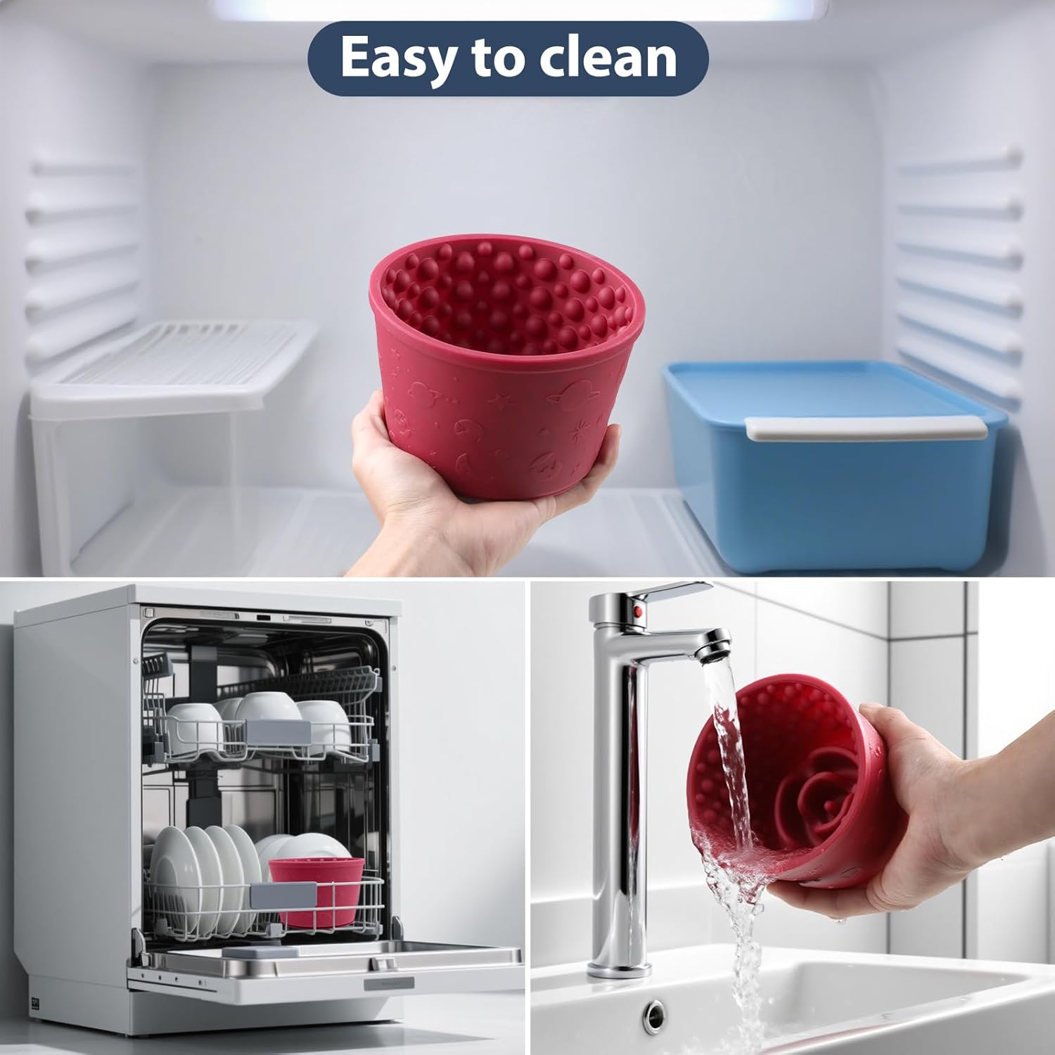 About this item Promote Calm & Focused Behavior: Designed to reduce anxiety and boredom, this dog slow feeder bowl helps your dog stay calm during grooming, bathing, or alone time. Perfect for anxious eaters or dogs that need a distraction Food Grade Silicone Material: Made from premium food-grade silicone, and gentle on your dog’s tongue — ensuring a safe and enjoyable feeding experience every time Anti-Choking & Healthy Eating Design: Encourages slower feeding habits and prevents gulping or choking. The textured licking surface stimulates saliva production, improving digestion and oral health for dogs of all sizes Non-Slip & Easy to Clean: Features a strong non-slip base to keep the bowl steady during use. The flexible silicone design makes it easy to rinse, hand wash, or place in the dishwasher for quick cleanup Perfect for All Dog Breeds & Treats: Ideal for peanut butter, yogurt, soft snacks, or frozen treats. Whether you have a small puppy or a large breed, this slow feeder dog bowls provides fun, enrichment, and stress relief for every mealtime › See more product details